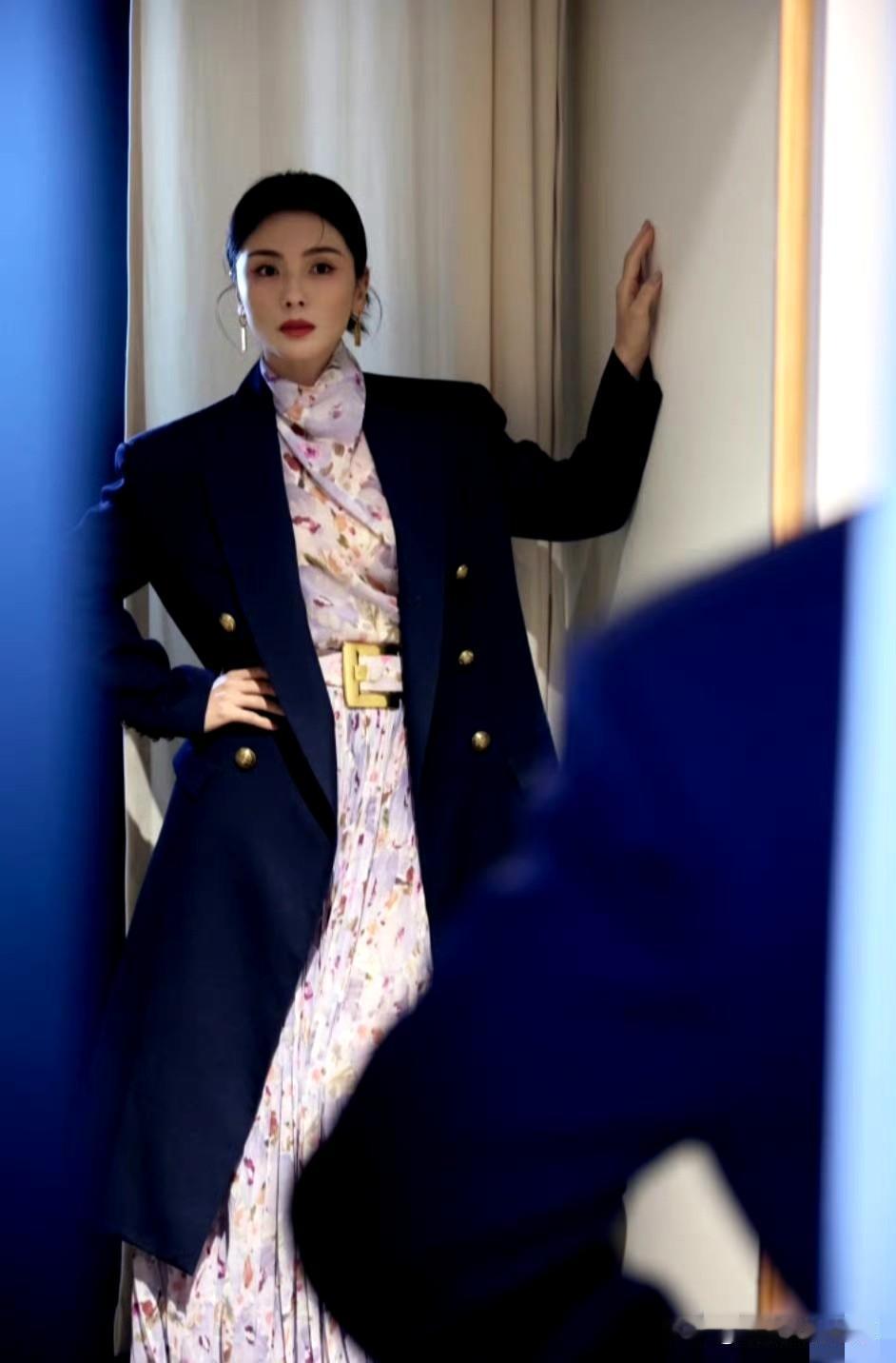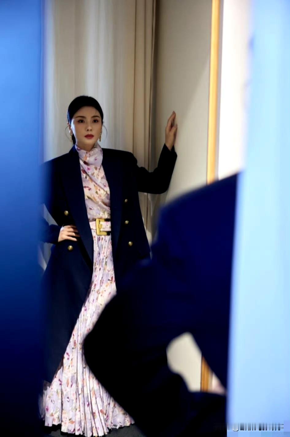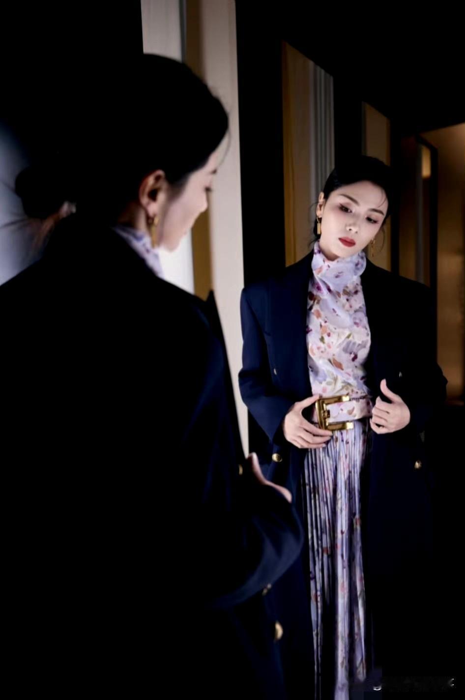 刘涛的秋冬穿搭:西装裹碎花,是职场姐姐的温柔杀 刘涛这组秋冬造型,把“刚柔并济”穿成了职场模板:藏青西装撑满利落气场,内搭的淡紫碎花裙裹着柔媚,丝巾缠成高领又添了丝精致。金扣腰带掐出腰线,长耳坠衬得脖颈纤长,连对着镜子整理衣摆的弧度,都带着“姐的优雅是底气”的松弛。 秋冬总怕穿得沉闷,她偏用“西装罩碎花”的对冲感,把通勤装穿成了“既能开会又能赴约”的万能公式——这才是熟龄姐姐的穿搭教科书。