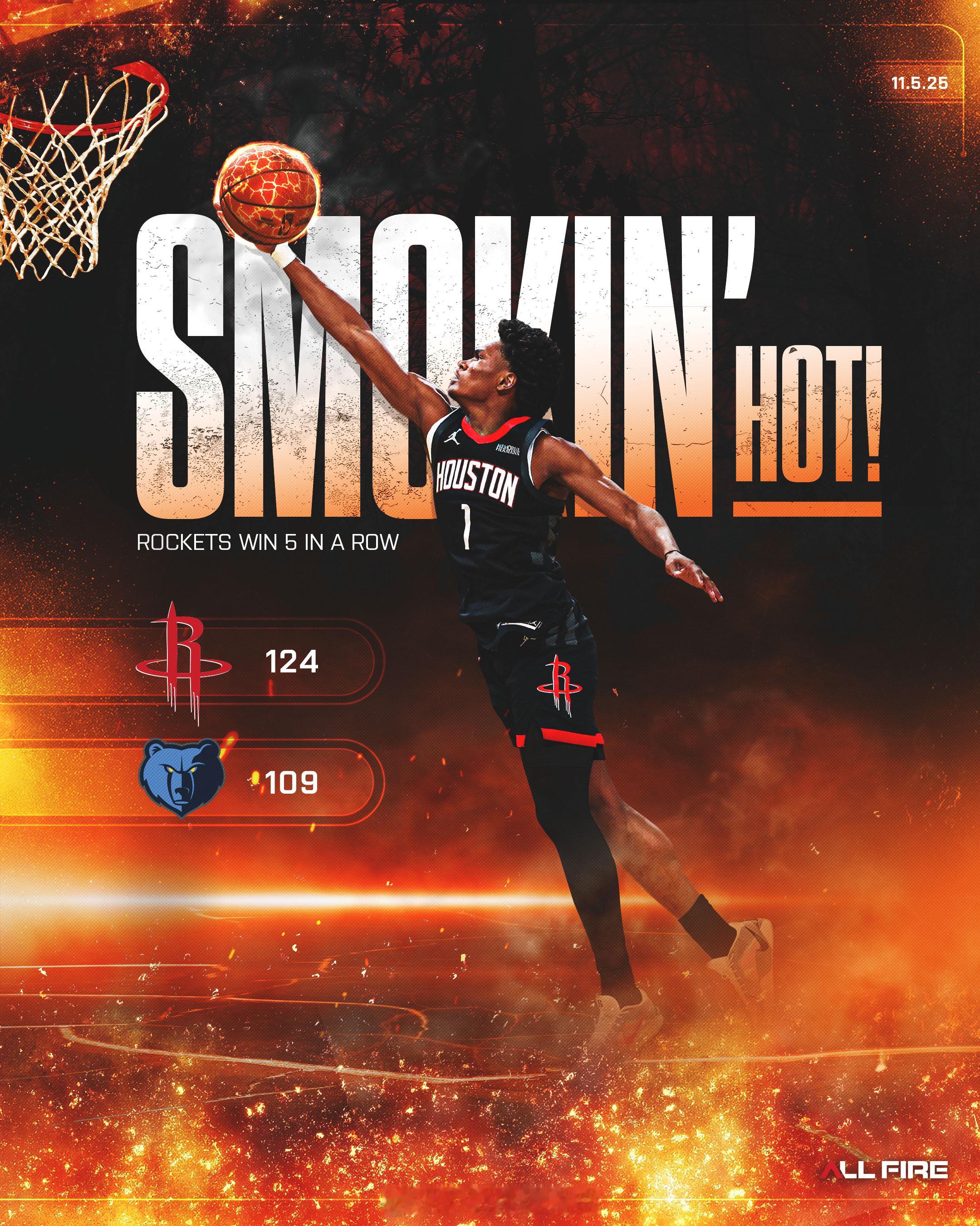 火箭官方晒五连胜海报!明天加油!火箭五连胜休斯顿火箭NBA吐槽大会