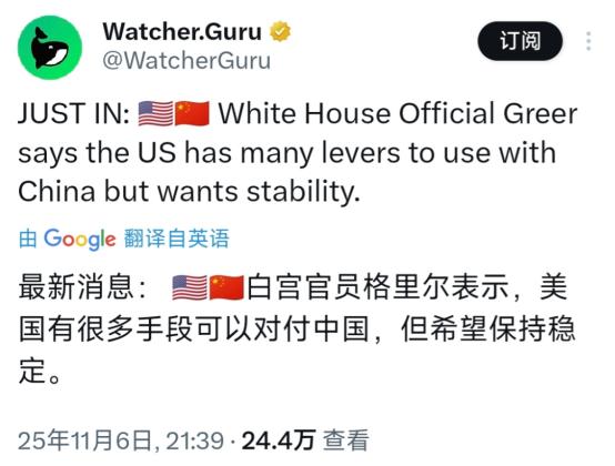 美国贸易代表格里尔当地时间11月6日表示,美国有很多手段可以对付中国,但希望保持稳定。 这话翻译过来就是:“你得听我的,不然我就翻脸,可我这会儿暂时没力气翻”。懂格里尔的都知道,这主儿压根不是盼着“稳定”的人。他是特朗普一手提起来的贸易干将,早年间就跟着前贸易代表莱特希泽,干过给中国加关税的脏活。 今年2月上任后更没闲着,又是提议取消中国“永久正常贸易关系”的地位,又是要给中国商品加新关税,还想把中国商品借第三国绕进美国的路全堵死。 芯片、飞机制造这些关键领域的出口限制,他也力主往大了扩,连美国企业去中国投资,他都要插一杠子审查。这么个满脑子都是“卡中国脖子”的人,突然喊“稳定”,可信程度跟特朗普说“美国没通胀”差不多。 更逗的是他说的“不少手段”。特朗普政府办事从来是有招就亮,去年给加拿大加35%关税、给巴西加50%关税,说干就干,半点儿不含糊。要是格里尔真攥着能拿捏中国的狠招,凭他们急着压中国发展的那股劲儿,早敲锣打鼓亮出来耍威风了,哪会留着当口头筹码? 说白了,这些所谓的“手段”,要么是翻来覆去用烂的老套路,要么就是没试过好不好使的空架子。 喊“稳定”的底气虚得很,可藏着的心思倒挺实在,这就是美国的缓兵之计。三天前美国财政部才认了,第三季度通胀还是比预期高,9月通胀率3%的数就搁那儿,特朗普嘴硬说“没通胀”也没用。 国内喊了半天制造业回流,一点儿起色没有;不少美国农场主盼着中国买他们的大豆,科技公司也盯着中国的产业链。真要是撕破脸搞对抗,先疼的肯定是美国自己。之前加的那些关税,最后大多都转嫁到美国老百姓头上,货架上的东西一涨价,骂声就没断过,这亏他们又不是没吃过。 更关键的是,中国早不是当年那种任人拿捏的样子了。格里尔想搞技术封锁,咱们的新能源汽车、光伏产品照样卖遍全世界;他想加关税,中国外贸进出口该稳还是稳,产业链的扛造劲儿就摆在这里。就在上个月,中美刚说好要开新一轮经贸磋商,中方的态度很明确:合作没问题,但得平等;谈稳定也可以,可不能让中国吃亏。 格里尔的算盘打得精着呢:一边拿“手段”当筹码,想在谈判里逼中国让步;一边用“稳定”当幌子,稳住美国企业的心思。可他忘了,中国不吃“施压”这一套。我们不会因为他喊“稳定”就松警惕,也不会因为他提“手段”就慌神。美国要是真有诚意谈稳定,就得拿出真行动,把不合理的关税壁垒撤了,放宽对中国的技术限制,别光耍嘴皮子。 说到底,中美贸易要稳定,靠的是互相尊重,不是哪一方口头赏饭吃。格里尔的话听听就完了,真要知道美国心里咋想的,看他们做啥远比听他们说啥管用。毕竟在利益面前,漂亮话谁都会说,真本事才是硬通货。