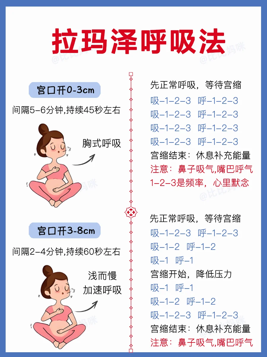 如果你打算顺产 那么孕晚期就不要偷懒了 可以开始练习拉玛泽呼吸法了 能够帮助减轻分娩疼痛,减少撕切和侧裂的风险 · ⭕️本文内容包括: ✅宫口开0-3cm时 ✅宫口开3-8cm时 ✅宫口开8-10cm时 ✅生产时 ✅宝宝露头时 ✅宝宝顺利出生🐣 · 愿所有的孕妈妈们都超快顺产,无侧切无撕裂
