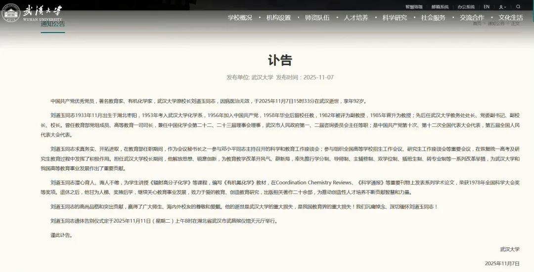 “中国最后一位大学校长”走了!那个敢让武汉大学学生直接“踹门”的校长,永远合上了他的教案。 1980年代的武大樱花树下,学生们曾见过这样的奇景:校长骑着自行车穿行校园,衬衫口袋里插着钢笔,遇见学生辩论会就刹一脚,蹲在路边加入争得面红耳赤。他是刘道玉——中国高校改革史上最年轻的校长,也是无数师生心中“永远的刘校长”。 他任内干的“出格事”现在听来仍然觉得震撼:允许学生自由转系,鼓励师生创办中国最早一批社团,甚至当着巡视组的面说:“真正的大学不该只有一种声音。” 当年有年轻教师因言论受质疑,他拍案而起:“思想罪不该存在于大学!” 那年他卸任时,中文系学生在行政楼前挂出横幅:“永远的校长”。此后三十余载,病榻上的他仍握着放大镜撰写教改方案,纸页边缘密密麻麻批注着:“大学要让人成为人”。 今夜,珞珈山的枫叶正红,当年那群敢与校长辩论的青年已生华发。而那个总说“教育是种树,不是做盆景”的老人,终于不必再为今天的教育忧心了。武汉大学