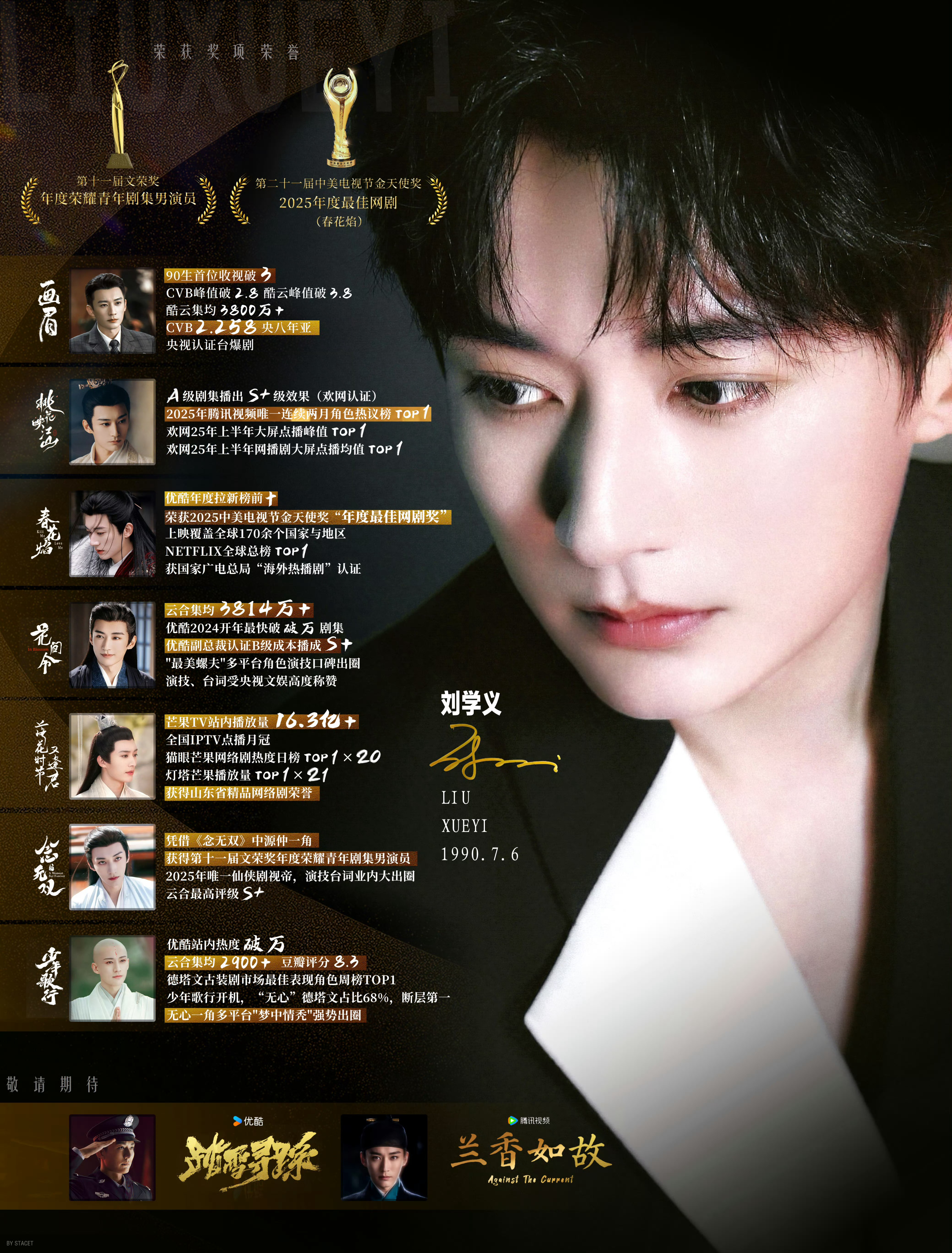 恭喜哥今年收获山东省网络视听大会精品网络剧《落花时节又逢君》、第十一届“文荣奖”视帝【《念无双》源仲】、第二十五届中美电视节最佳网剧《春花焰》三项荣誉[手指比心]