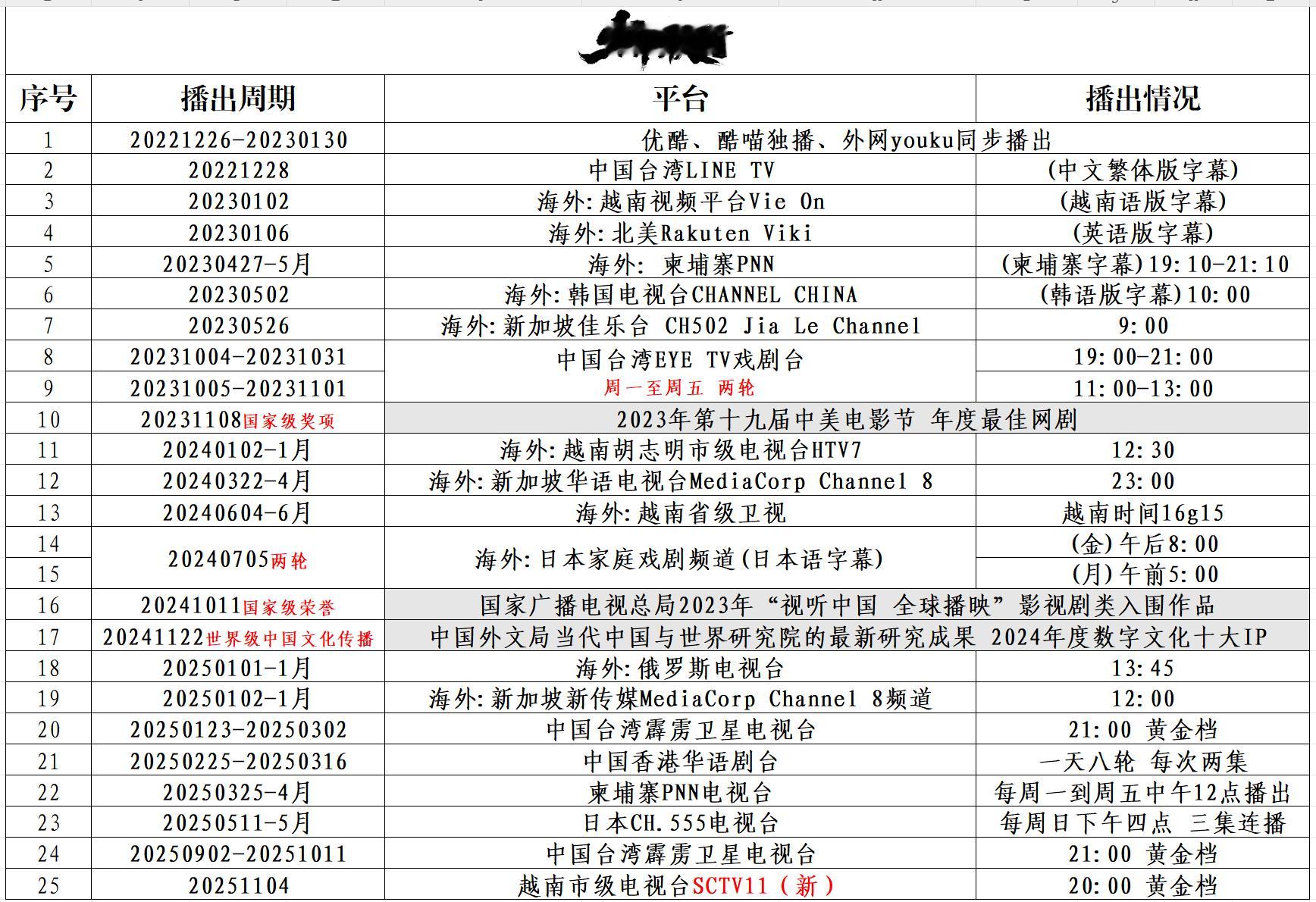 《少年歌行》11月4日起,越南电视台黄金档播出;