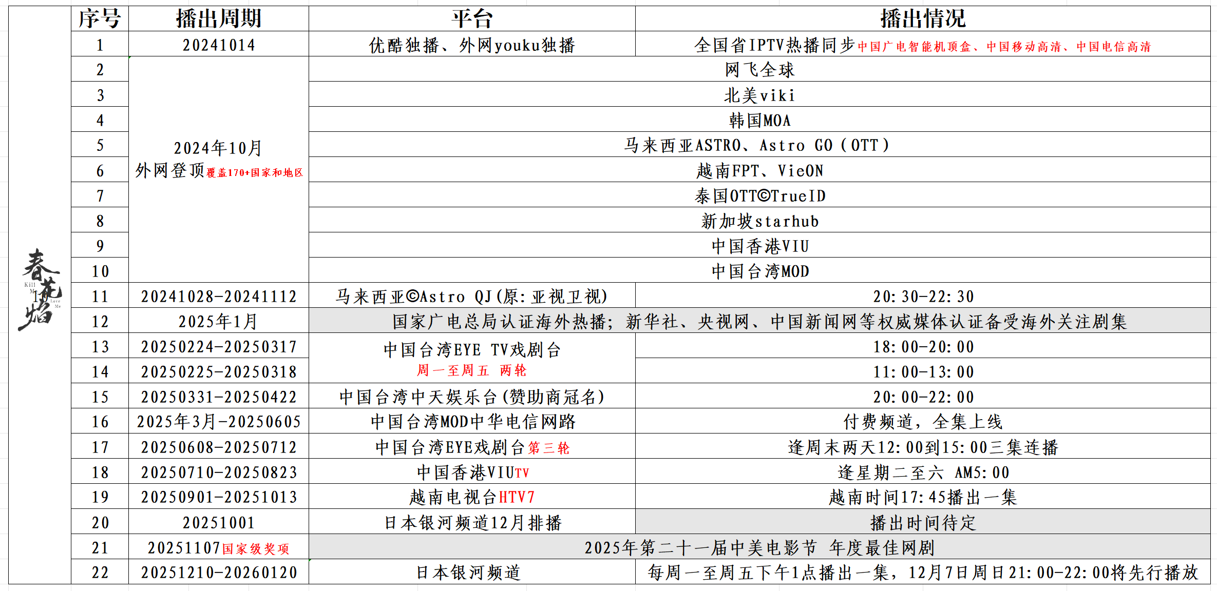《春花焰》12月10日起,日本银河频道播出(12月7日先行播放);
