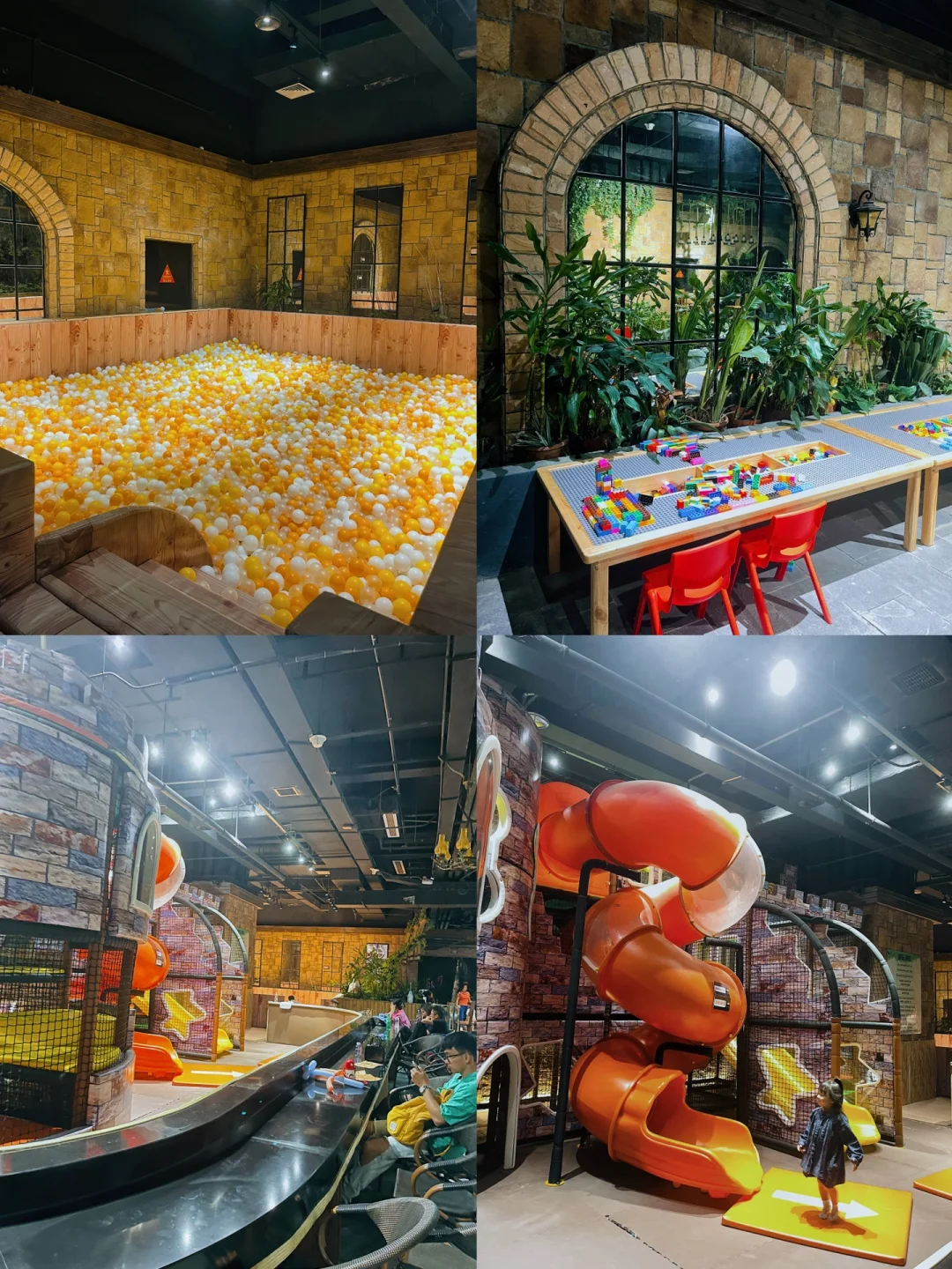 最后在出口的地方还设置了一个儿童游乐园,滑滑梯,海洋球,积木等,这里不仅是孩子们的天堂,也是大人解放双手休息的好地方