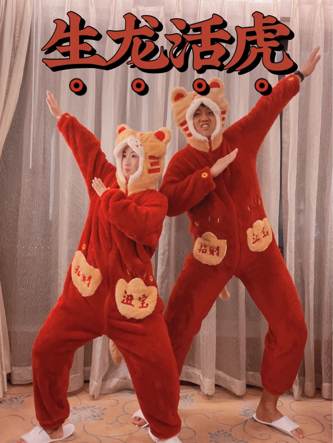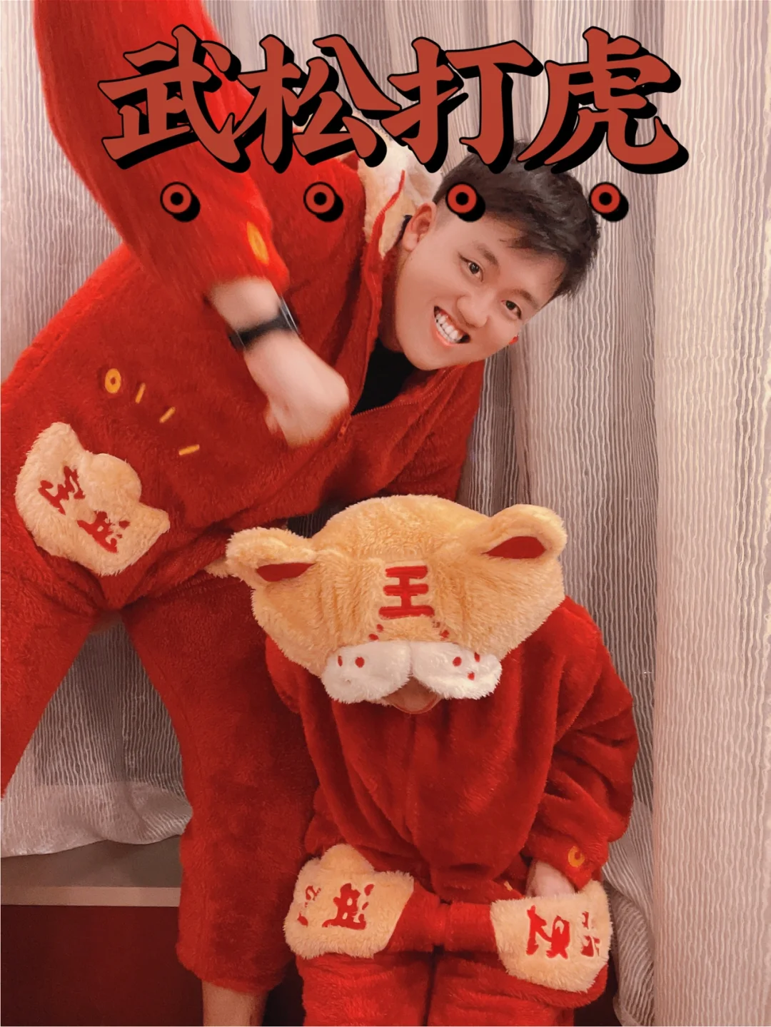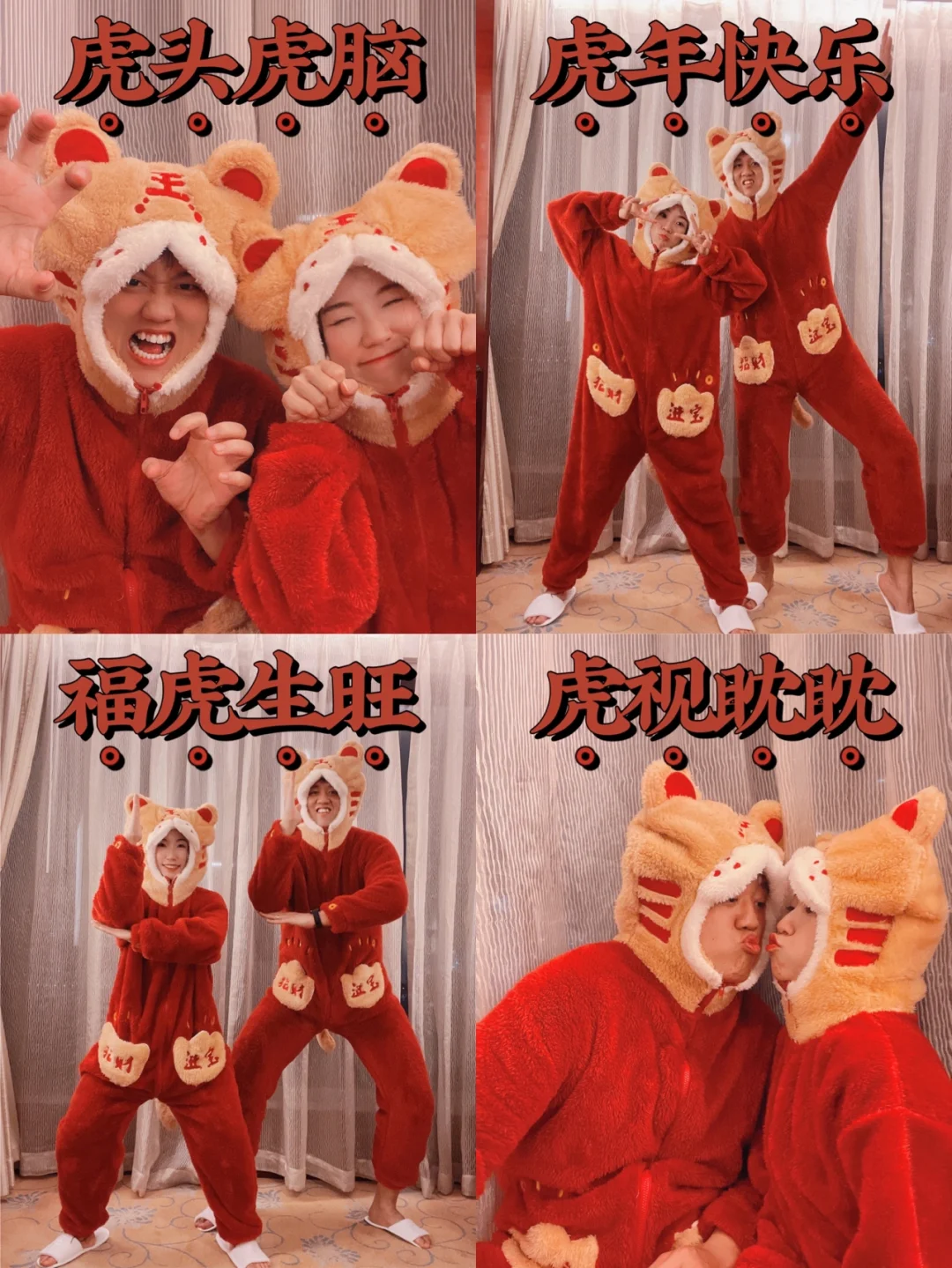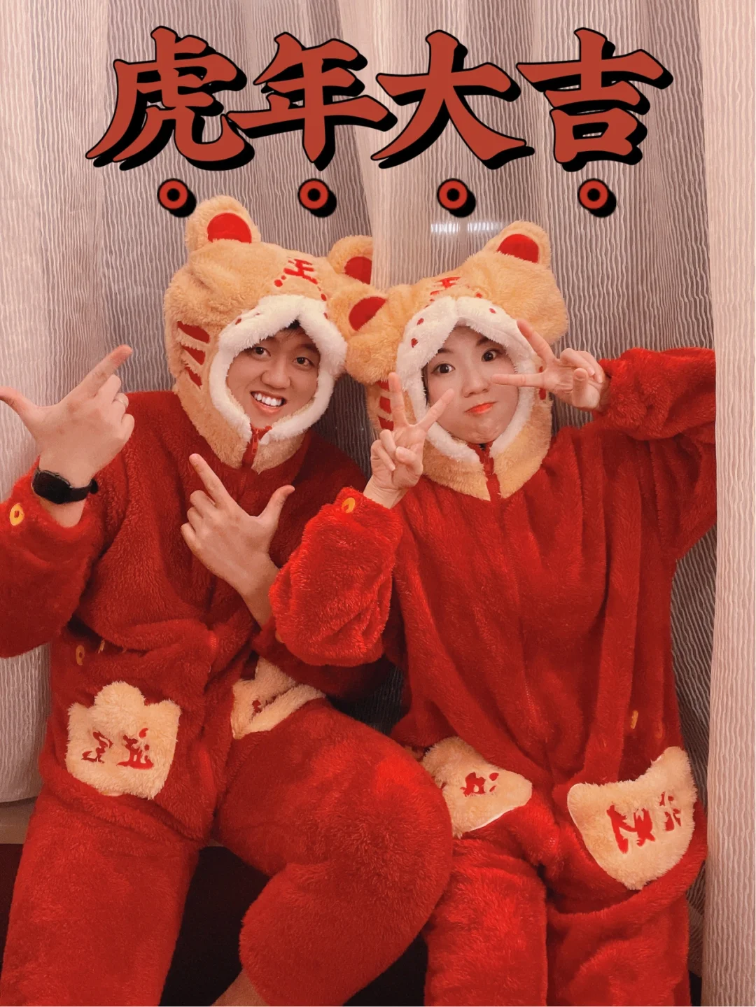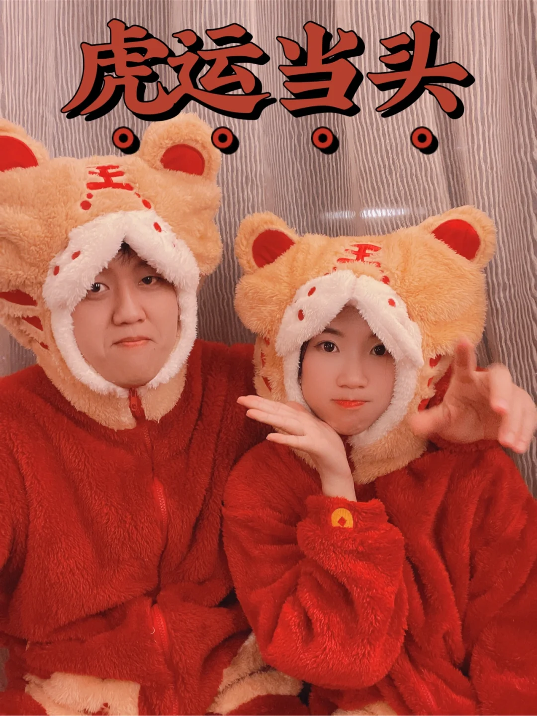 周末无聊,和男友又开始作妖了 穿上我们的老虎🐯睡衣 开启沙雕疯狂拍照模式📷 . 🧨虎年新年文案分享 1⃣️虎年不马虎,虎年超幸"虎" 2⃣️新年生虎气,虎年有对象 3⃣️这个冬天暖虎虎 4⃣️虎虎生威,如虎添亿 5⃣️猛虎下山,好事发生 6⃣️告辞旧年,虎虎生威 7⃣️万物更新,虎运登场 8⃣️日子如新光,欣喜与若狂 9⃣️来年有新愿,旧愿皆以偿 1⃣️0⃣️虎年福气旺旺 . 🎉提前祝大家虎年快乐,一切皆如意,钱包满满,福气满满、幸福满满😘 .