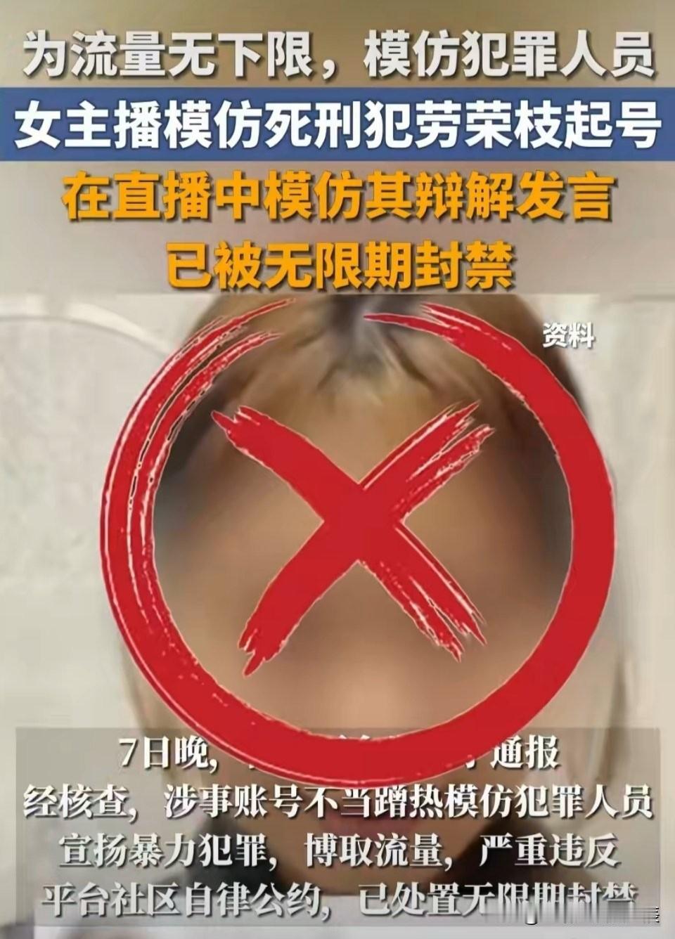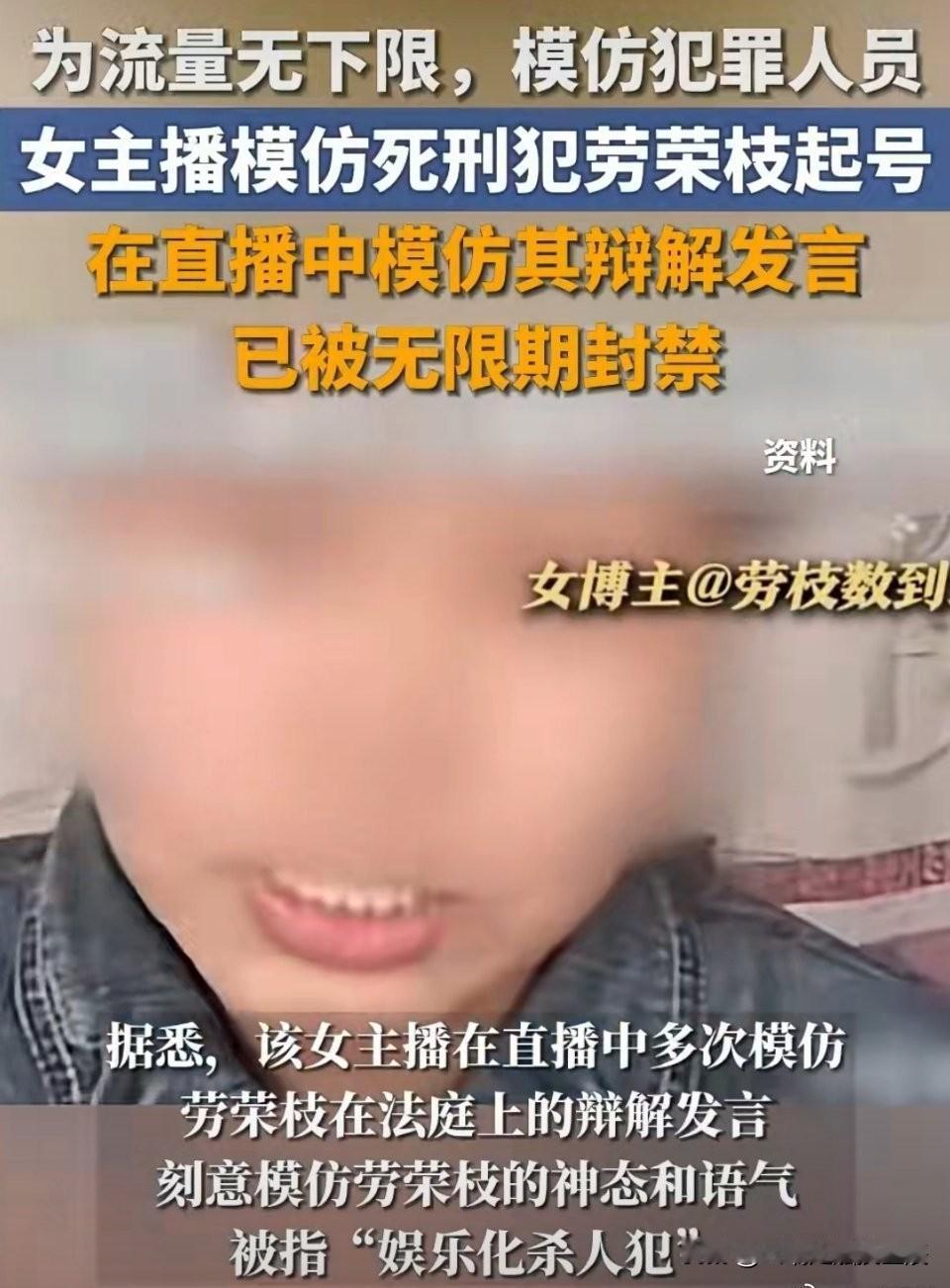 刷抖音时,看到有人模仿劳荣枝这种杀人犯,还学她在法庭上狡辩,真是让人火大!最近抖音封了个账号,就是因为这主播不当蹭热,宣扬犯罪博流量。为了红连底线都不要,太离谱了!网络不是胡闹的地方,咱们得支持平台整治这种坏风气,传播点正能量才对。 你们遇到过这种博眼球的直播吗?评论区聊聊你的看法!