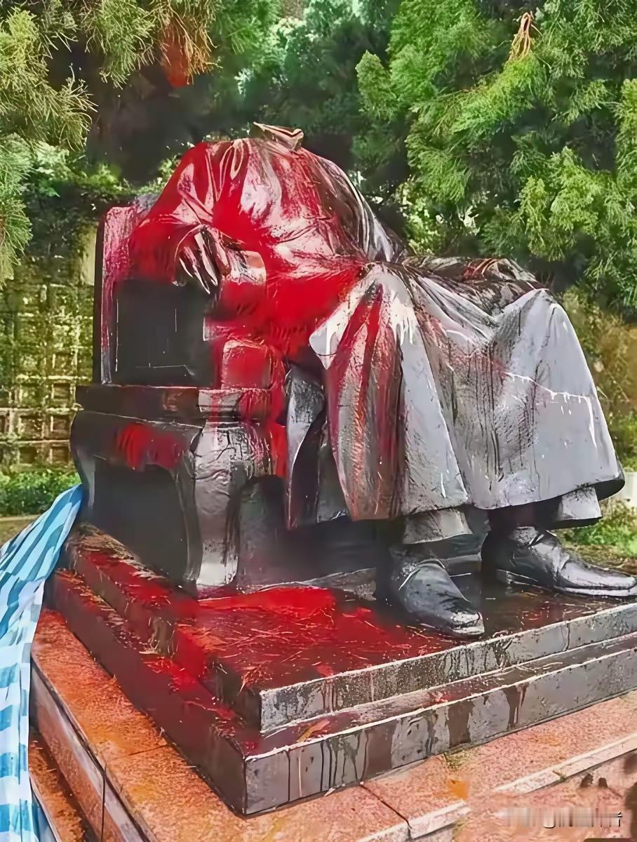 蒋光头的雕像,被青鸟、黑熊们砸了!脑袋被砍了,还泼了一身红漆! 国党实在是太无能了,主子的雕像都守不住,到了被推倒拨漆的地步,都没有人敢出声抗议 蒋万安也是个怂包,一点不出来谴责、追责!!驴粪蛋一个、表面光! 话说回来,本来就是历史罪人,丢了多少领土,造成今天的分裂局面。大快人心!苍天有眼!