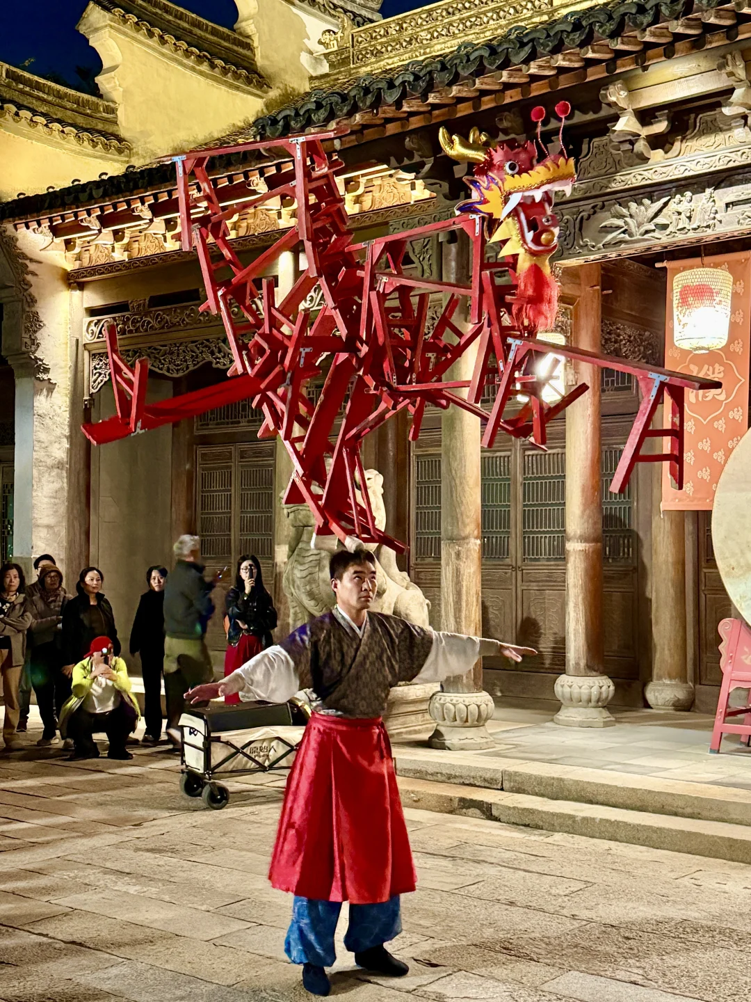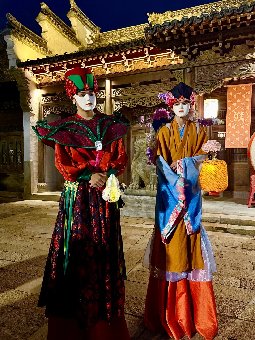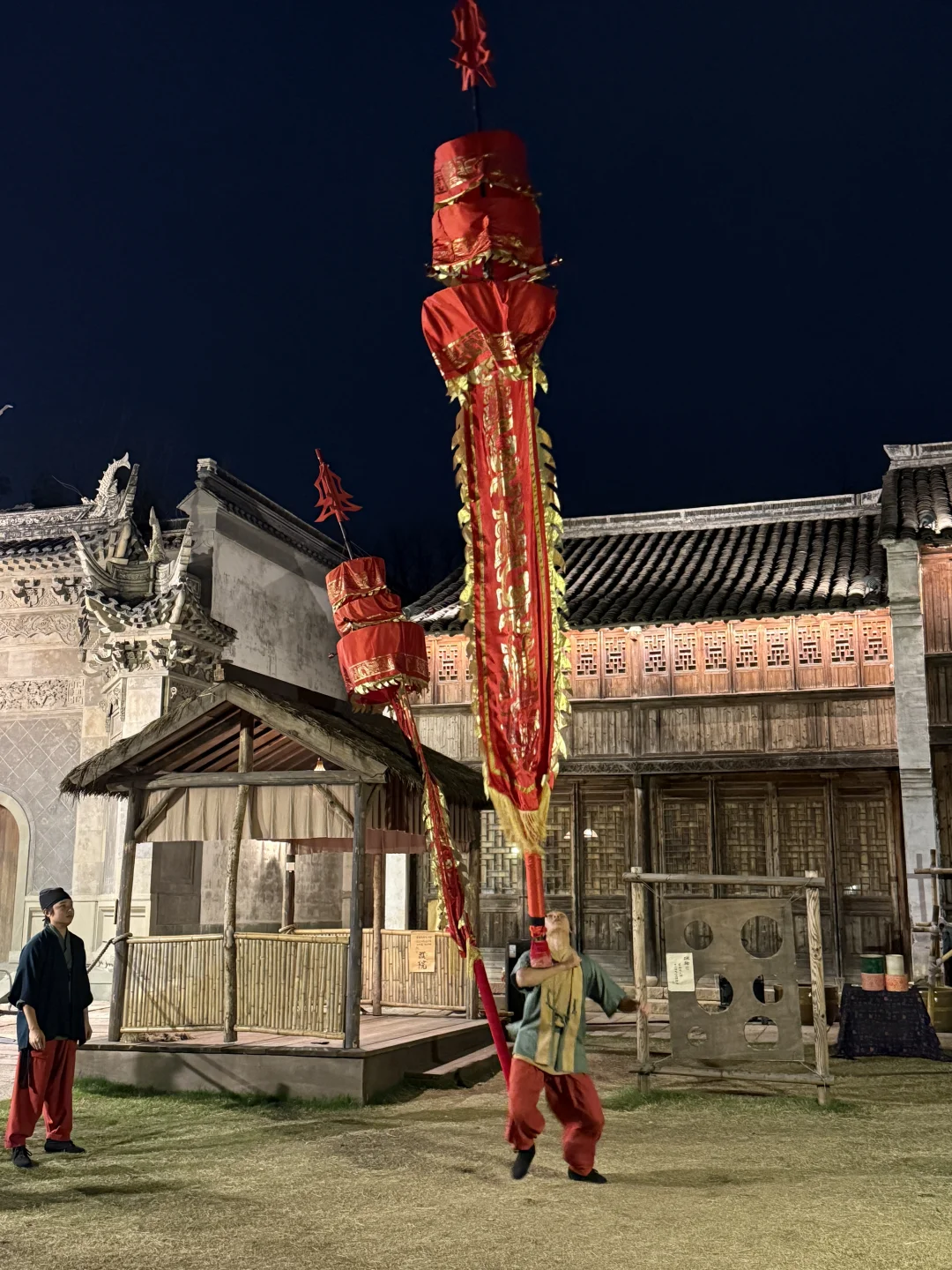 晚上19.30-18.30在侍郎码头,有很多非遗表演,水上火舞、顶中幡、傀儡戏、踩高跷、平衡木等演绎,每一个都震撼到失语