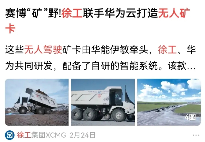 太牛了,其实徐工集团和华为早就合作了,在今年年初是徐工和华为、国家电网多家巨头企业联合打造。