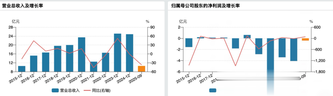 2021年至2024年,公司归母净利润分别为-2.33亿元、-5.66亿元、-3.42亿元和-4.09亿元,合计亏损15.5亿元;公司2025年前三季度亏损额则为4229.18万元。