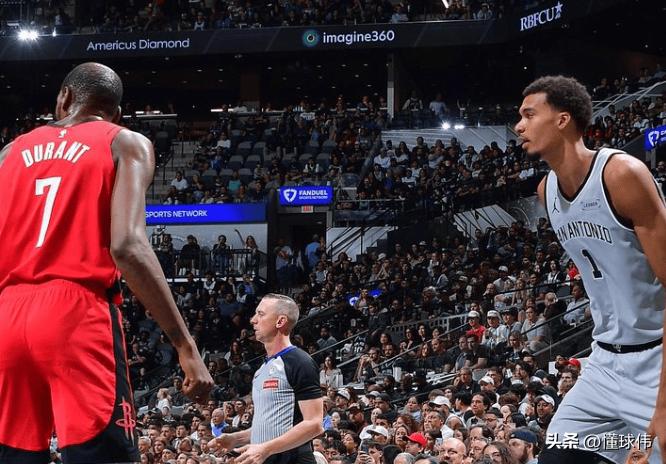 尊重但关系只是对手!文班亚马谈老大哥杜兰特: “我非常尊重KD,但是我跟他的关系,只限于对手关系。” “我非常想向他请教,但是我觉得,得等他退役后才可以。” “KD是伟大的球员,我对他有浓厚的兴趣,我喜欢看他打球。” “但是,我们现在只能是对手,我是那种竞争意识很强的人。” 文班亚马确实是挺真实的,一般人可能会说跟杜兰特关系很好,不过文班没有! 现在的文班亚马,真的很像一个再大一号的杜兰特,能突能投能扣还能防! 比赛中,文班亚马迎着杜兰特的防守,直接在阿杜头上完成了扣篮,霸气十足! 文班亚马只要保持健康,那确实是前途无量,有机会成长为像杜兰特一样的历史级别巨星!
