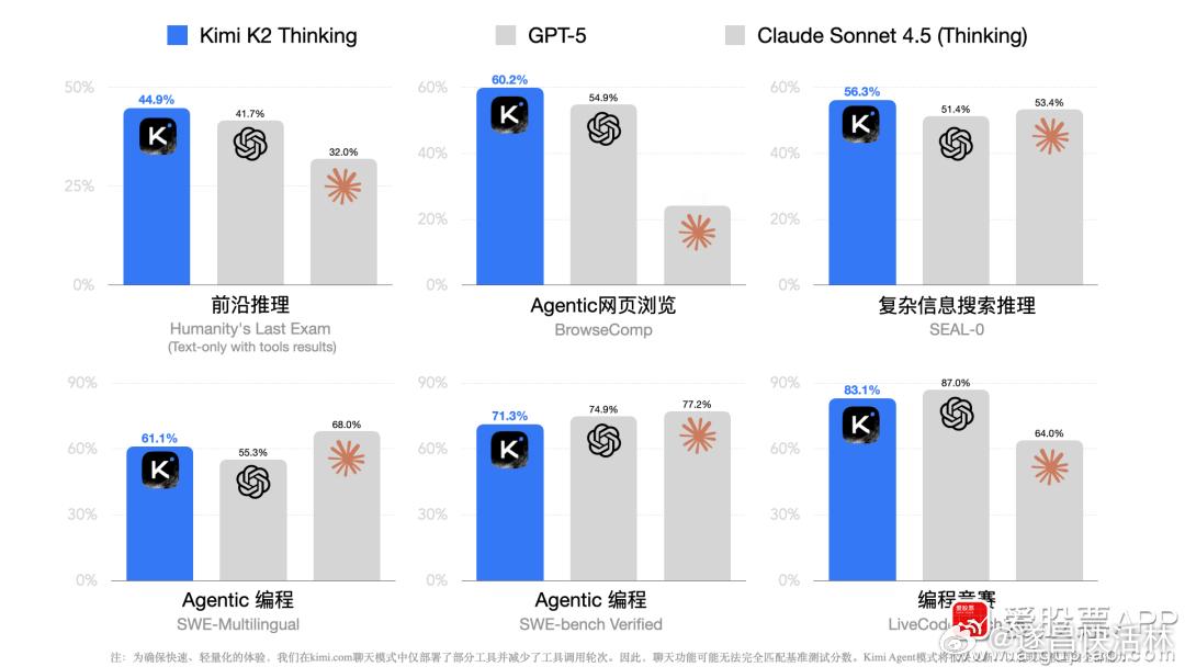 a股AI大模型 【训练成本被曝仅460万美元!月之暗面:Kimi K2 Thinking智能推理能力超过GPT-5】