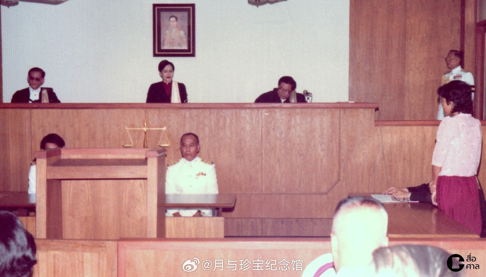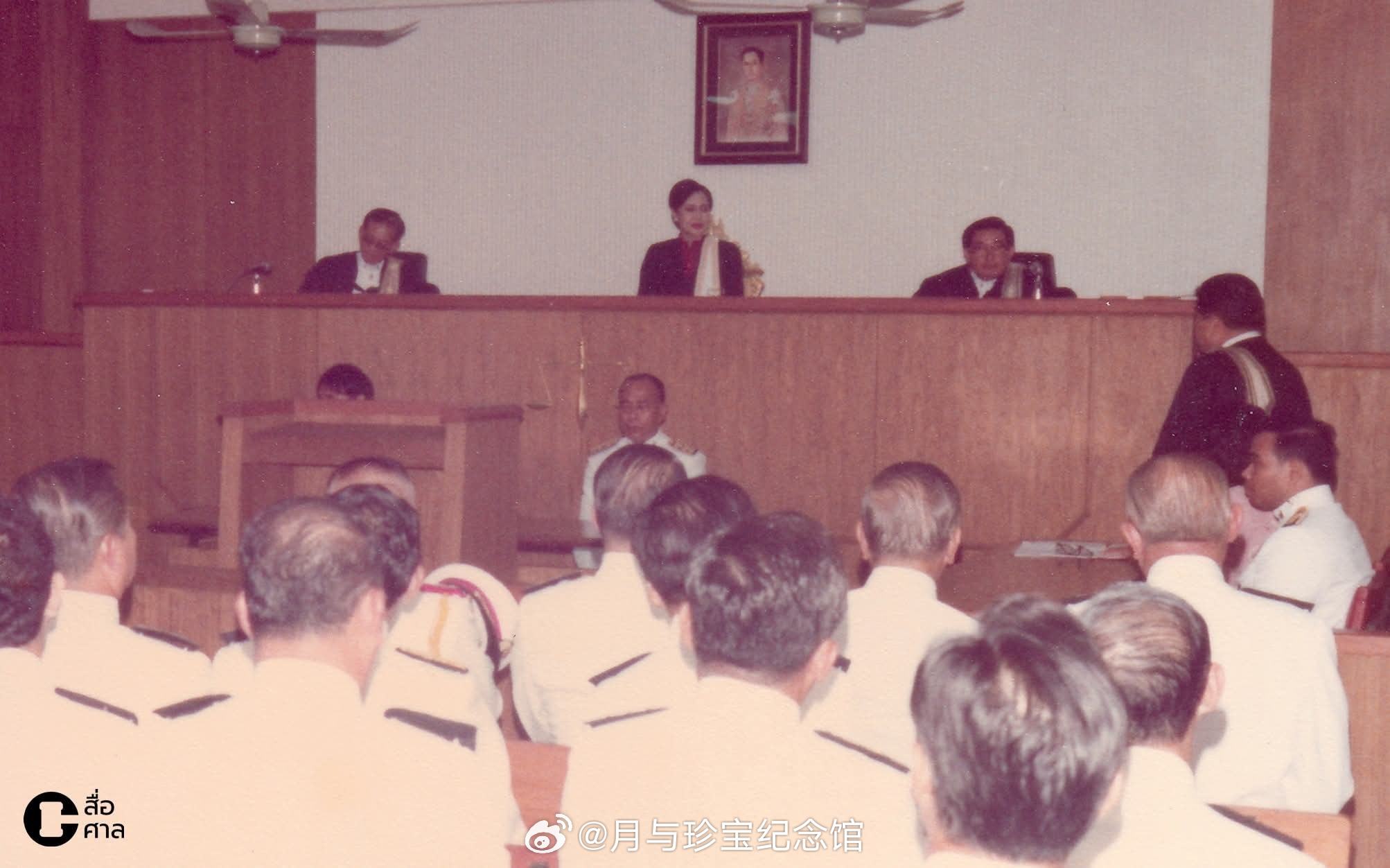 王室[超话]王室泰国王室暹罗往事 老照片:1982年7月13日,红唇姐出席吞武里府法院的开幕典礼,特意穿着法官长袍坐在法官席上。