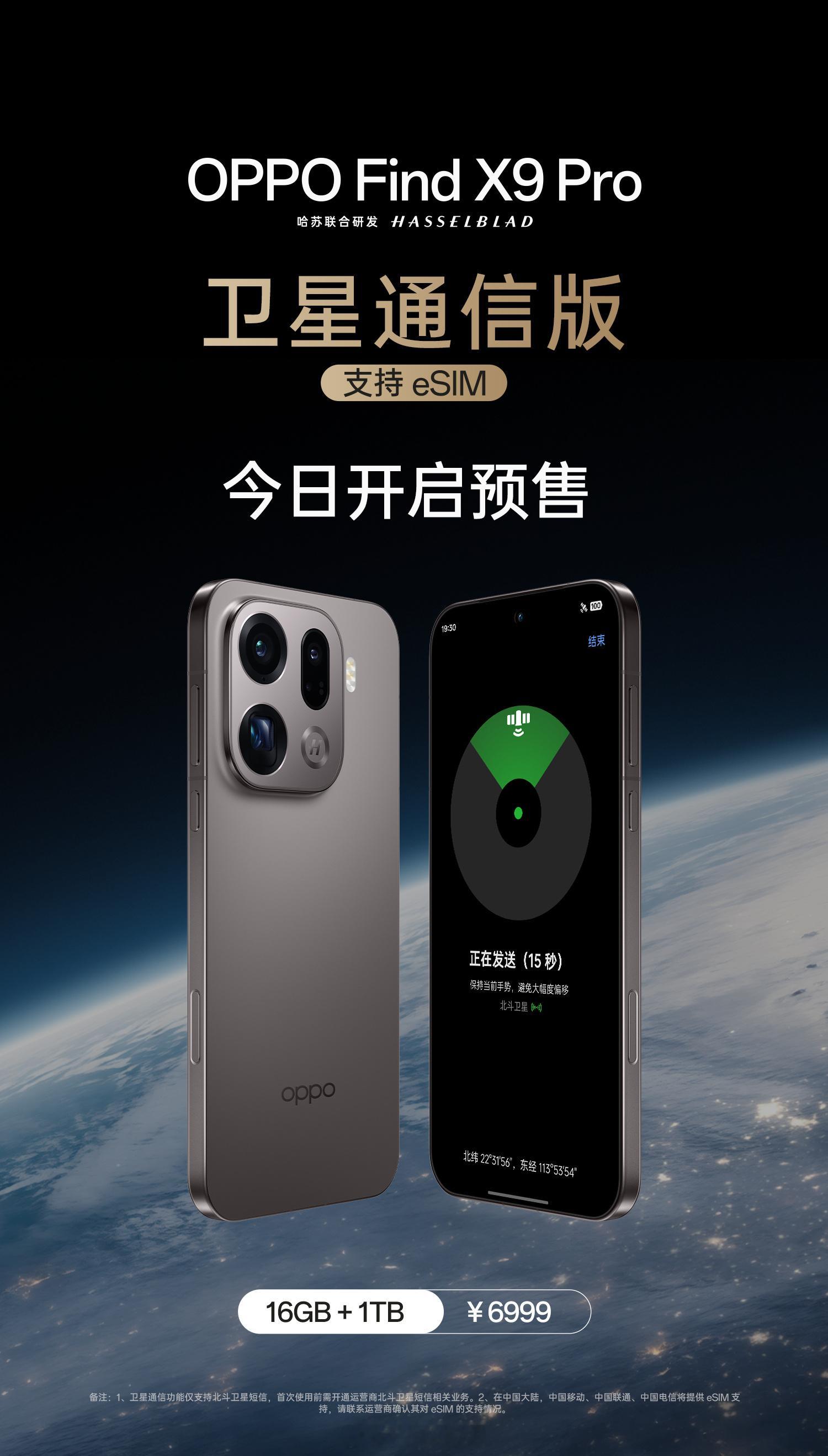 OPPO Find X9 Pro 卫通版今日开启预售,6999,双实体 SIM 卡 + eSIM,也就是四卡双待,要不要整一台?[喵喵]