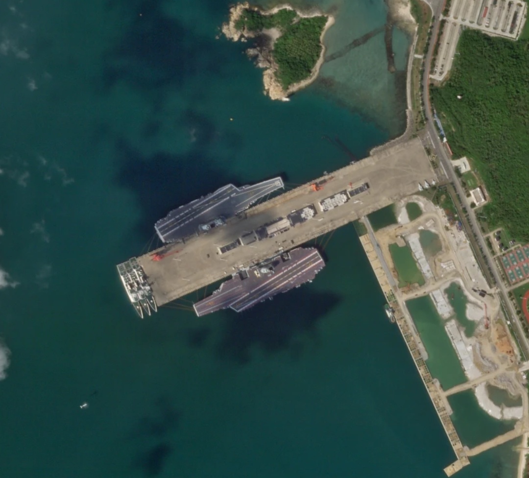 美国商业航天公司PlanetLabs卫星10月8日拍摄的山东舰和福建舰