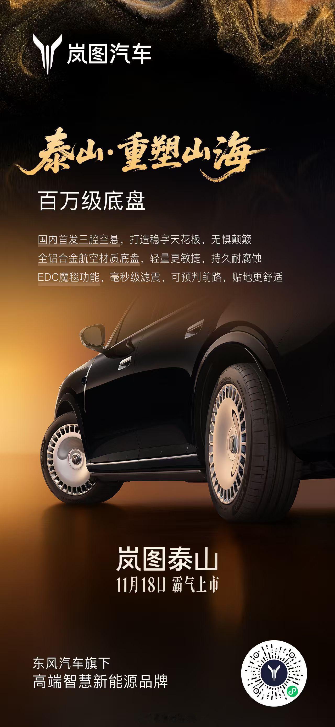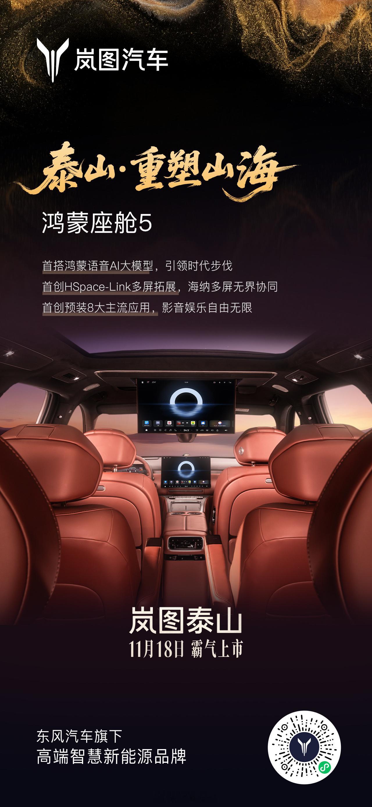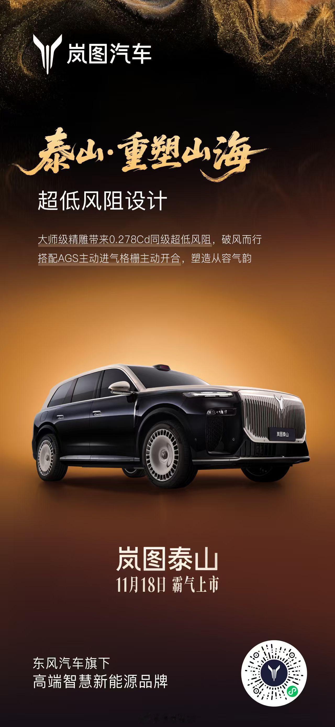 岚图泰山终于官宣了,11月18日上市,这台车无论是设计还是命名都是非常有气场。参