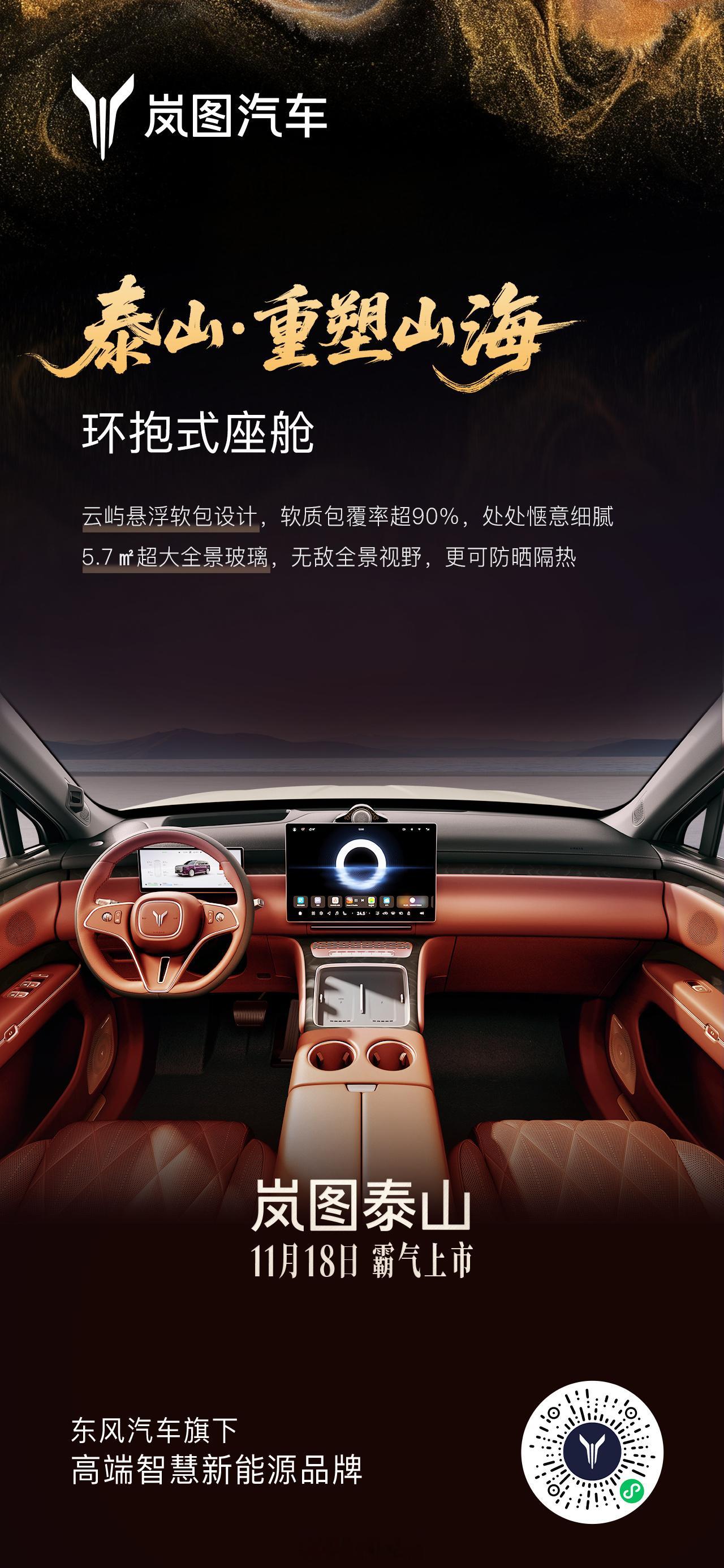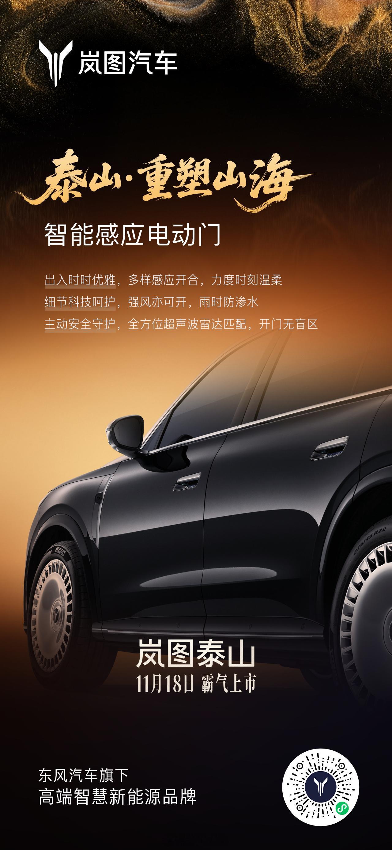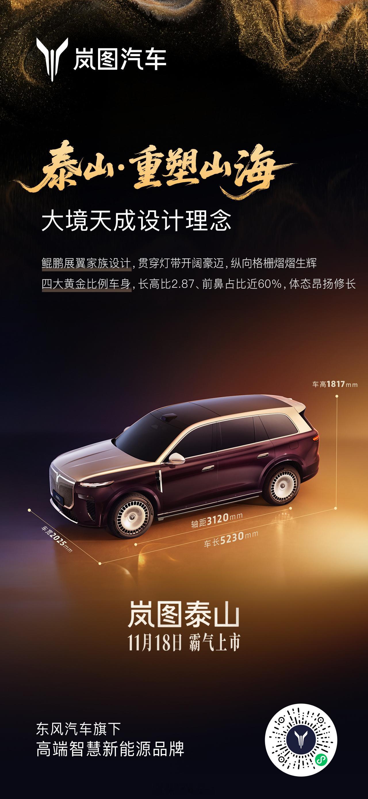 岚图泰山终于官宣了,11月18日上市,这台车无论是设计还是命名都是非常有气场。