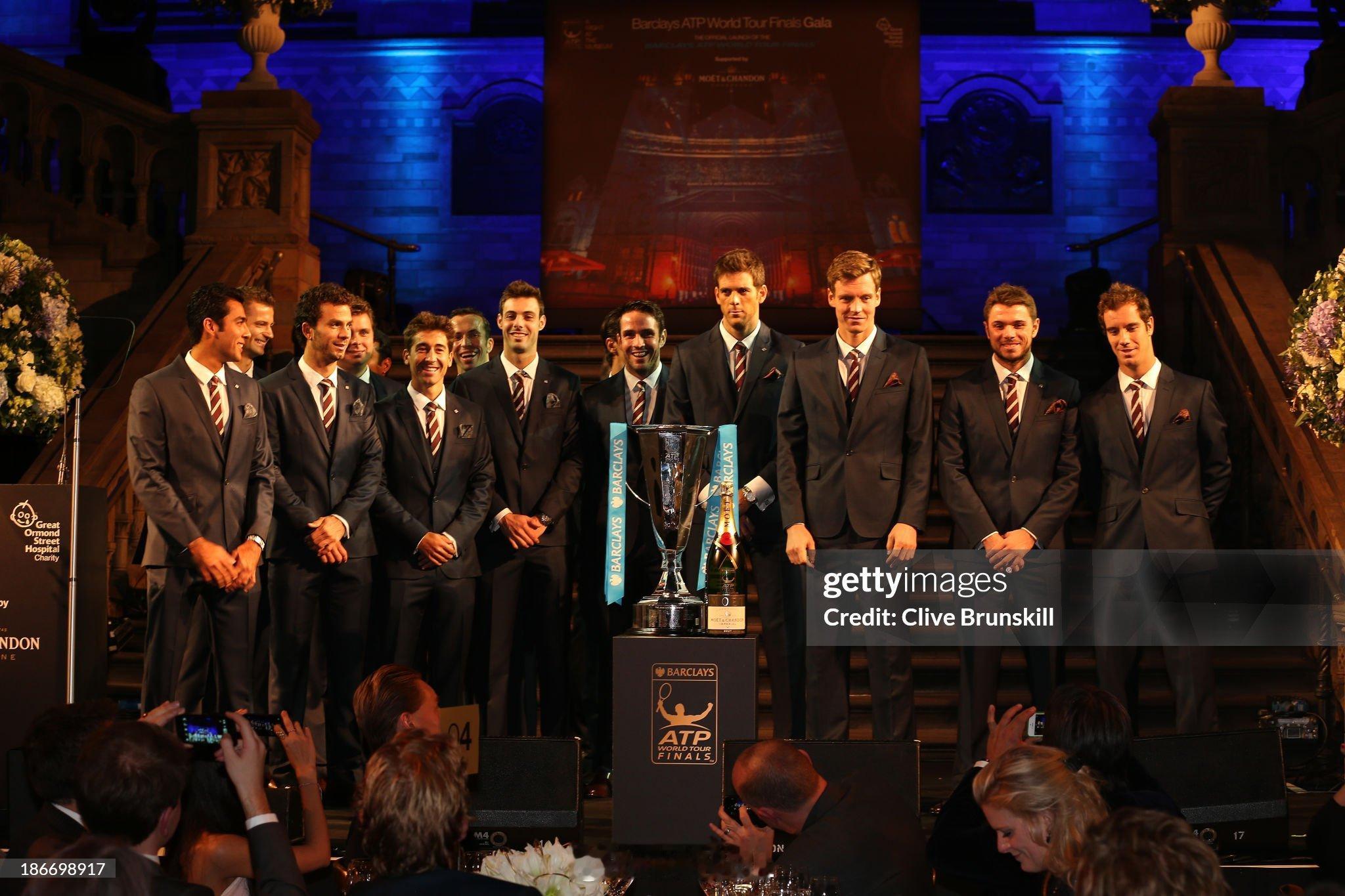 2013年终总决赛,紧跟在巴黎大师赛后面一周举行。年终合影时,还有几乎一半的球员还在打巴黎大师赛,所以当时的合影只有4名单打选手和5对双打组合。