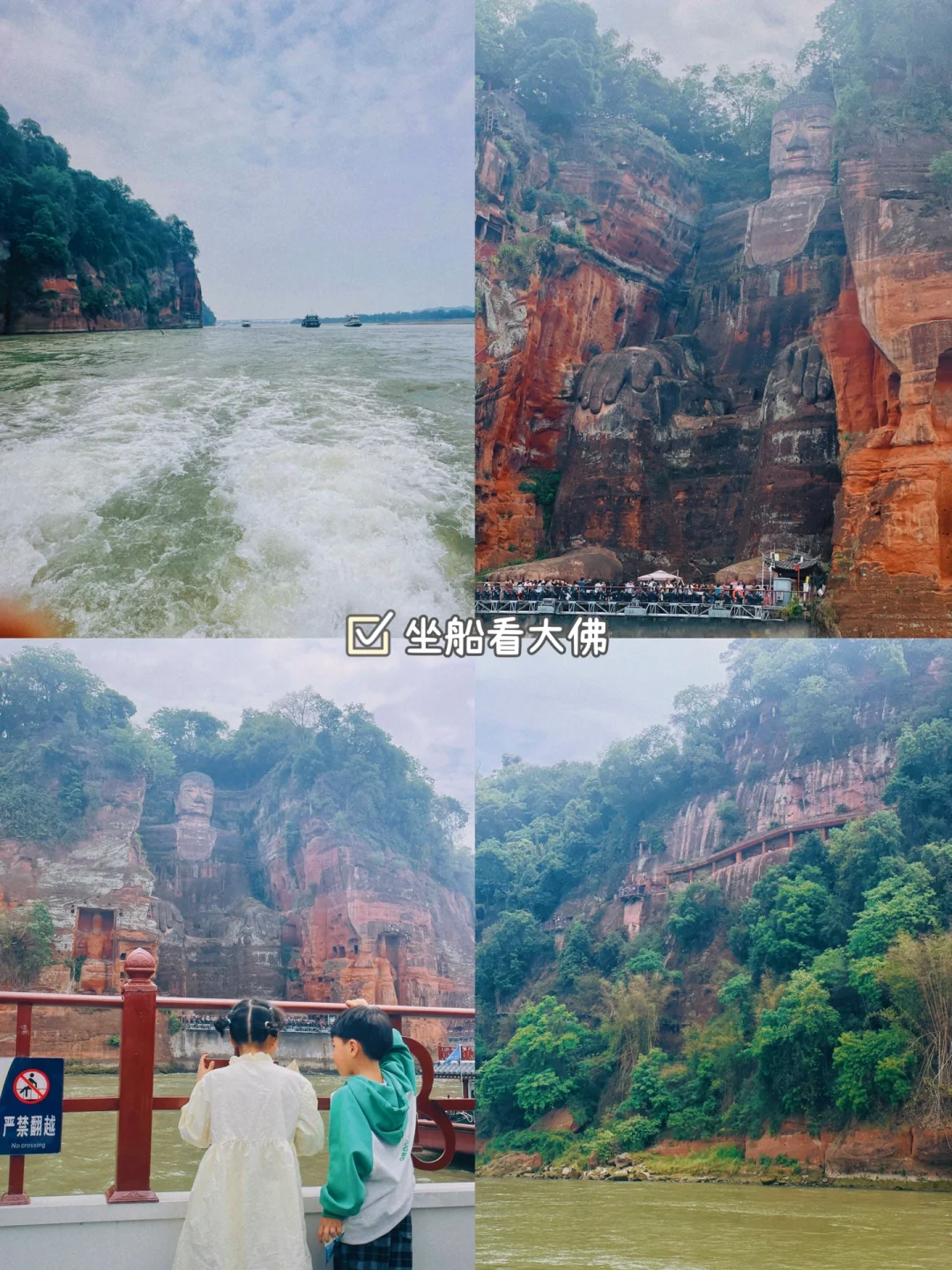 🚢早上打卡完东大街的美食我们就去坐船看大佛了,顺便消食,打车到乐山大佛游客中心就可以,70元的船票,儿童1.2m以下免费,游船会在大佛前停五分钟左右供大家拍照,我觉得比爬山好一些,带小朋友比较轻松,还能看到整个佛身