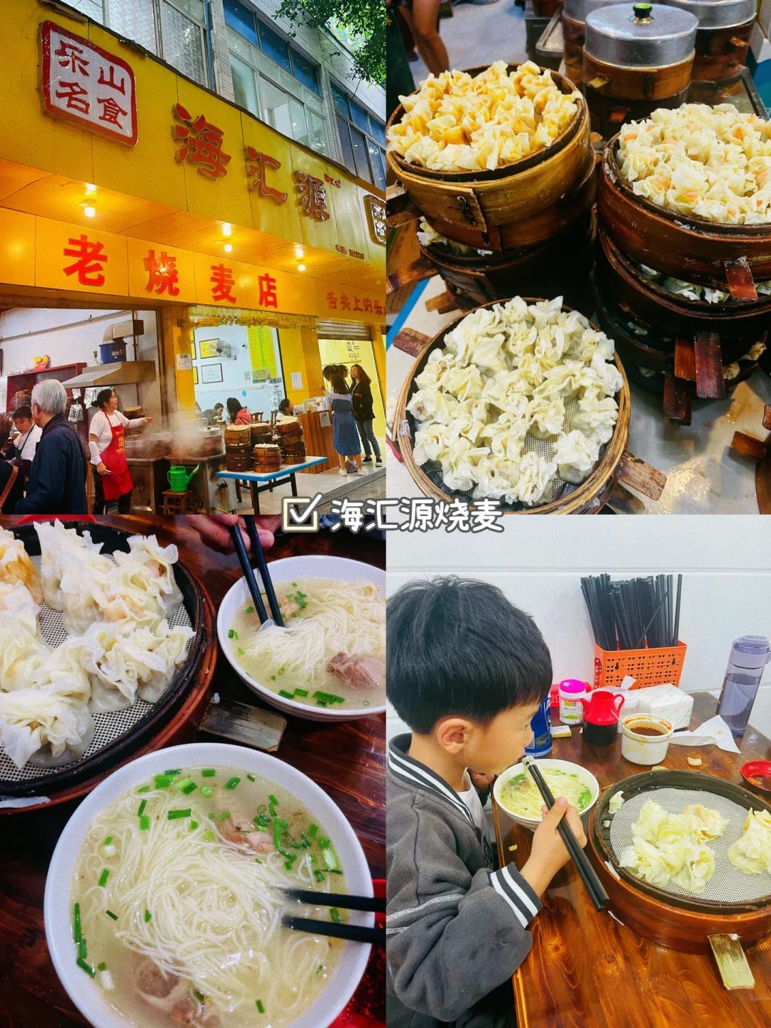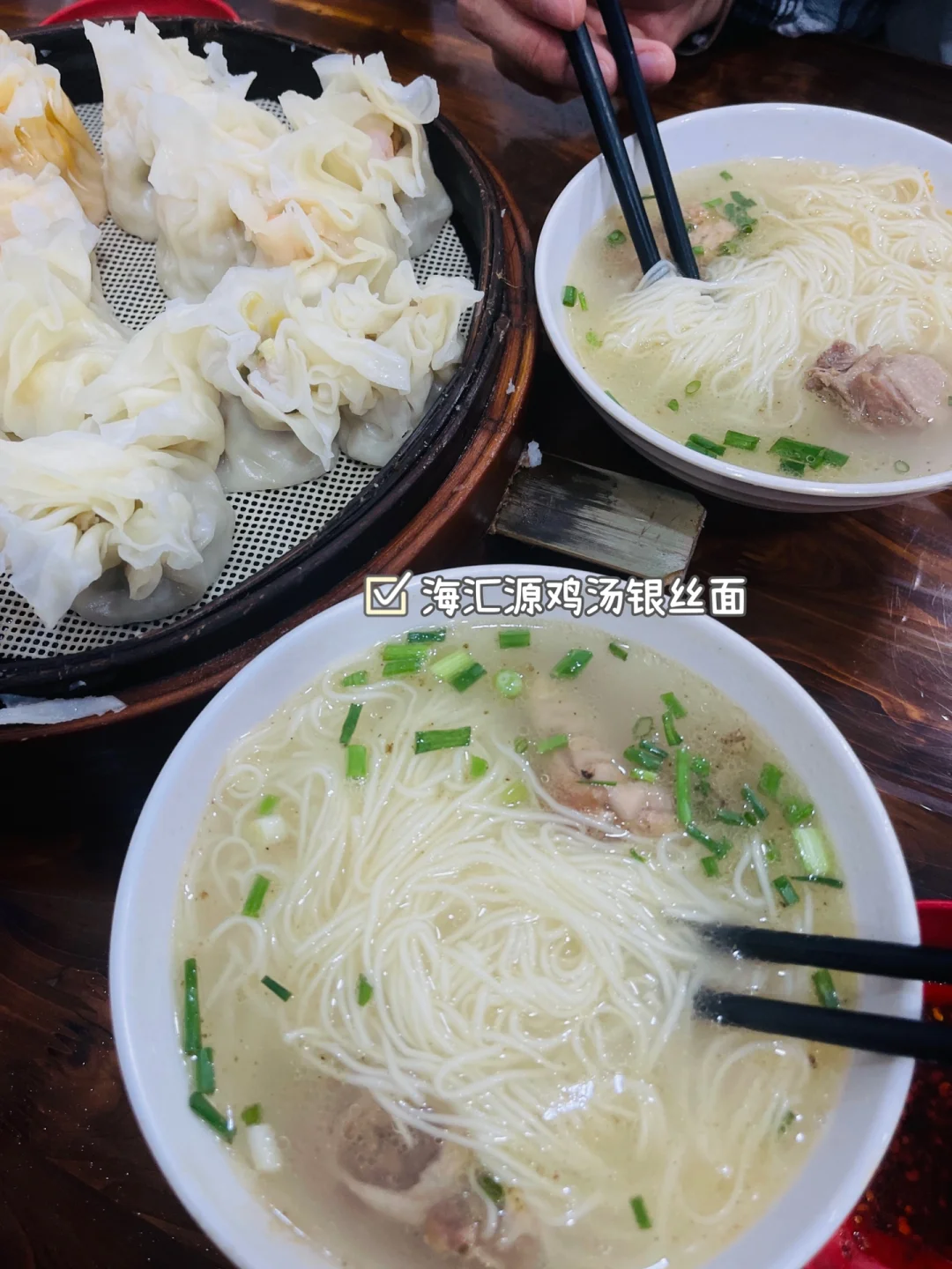 ✔️海汇源烧麦:推荐蟹黄味,翡翠虾仁味,和鲜肉味的三拼,配上鸡汤银丝面或海带鸡汤真的不错