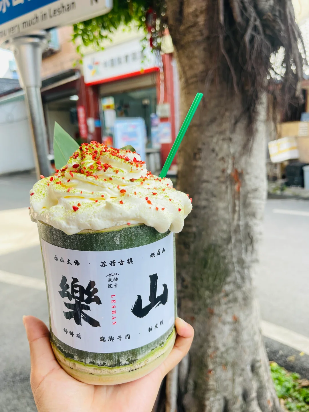 这里距离高铁站很近,所以下了高铁第一站就过来了,古镇不大只有两条古街,还有一个名为《我的院子》的店,是一个喝饮料的地方,图中“我在乐山很想你”的牌子和竹筒奶茶都在这里!