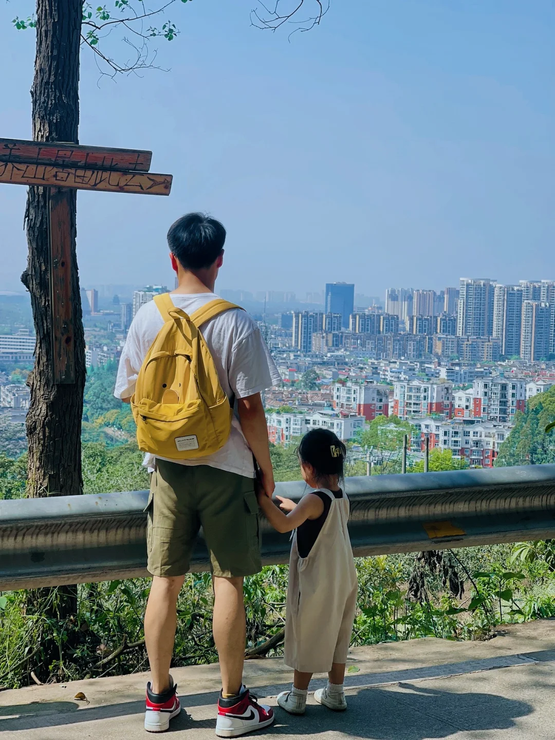 山脚下有卖水和小吃的商贩,山中还有游乐设施,套圈等,孩子们喜欢得不行,为了鼓励他们,说下山后可以选择来玩一会,这下爬的更有劲了,爬到山顶还可以眺望城市的高楼大厦,夜景一定非常漂亮