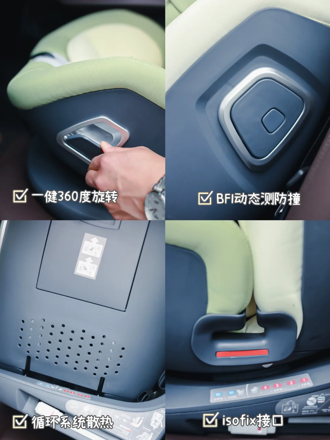可单手360度旋转,上下车很方便,正反向6档调节,可以满足宝宝各种姿势的坐躺,反向165度大躺角,防止小宝贝吐奶。还有智能的循环系统散热,让宝宝保持舒爽透气,夏天再也不会热一身汗,简直不要太贴心了