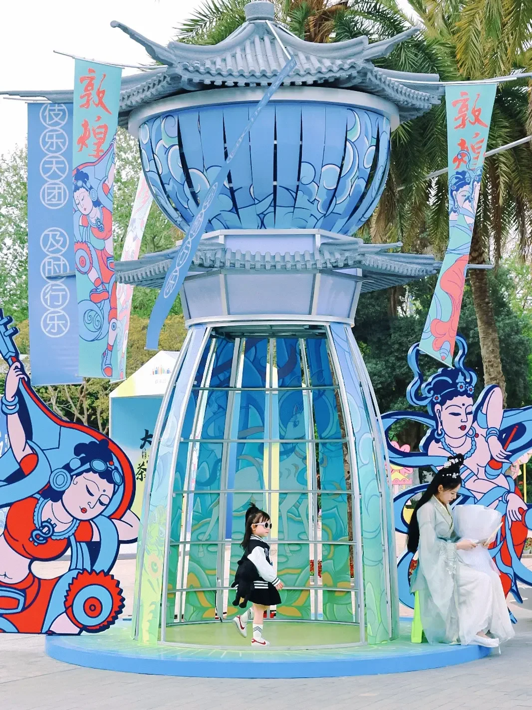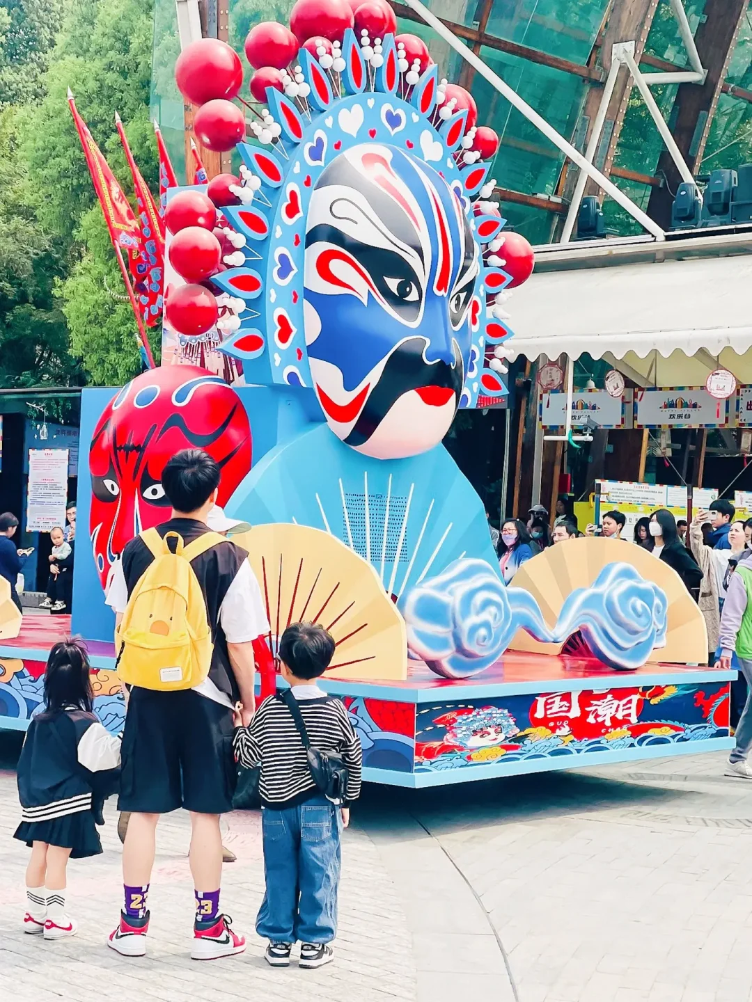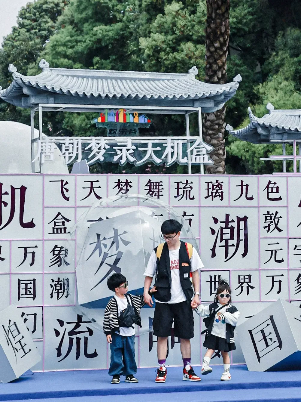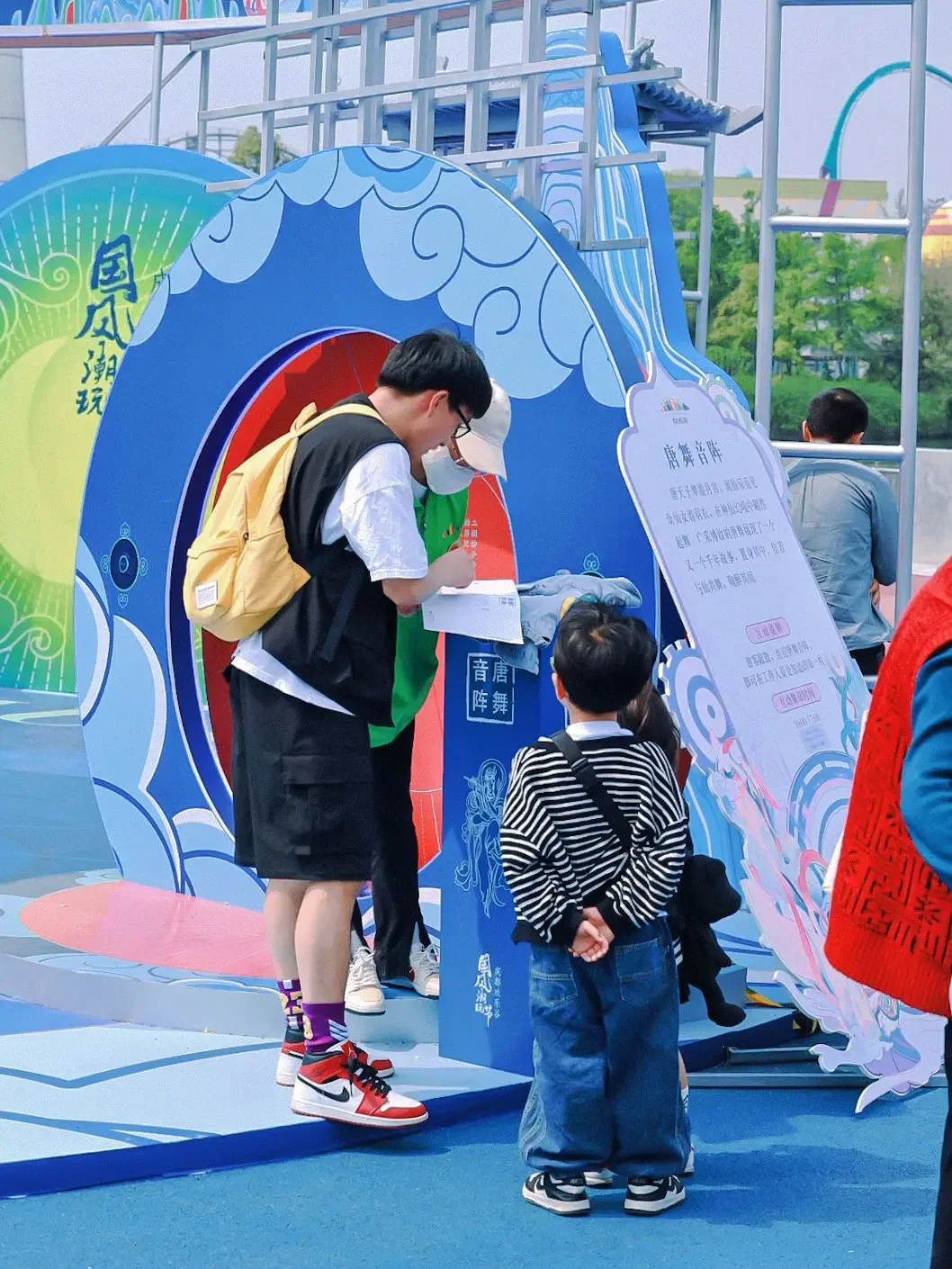 现场除了可以带孩子观看霓裳华服秀和精彩的舞蹈表演,还有盛世大巡游,会围着园区绕一圈。然后与国风美少年们合影互动!并且园区还设置了许多的互动打卡点位,再现场互动后就可以集齐章印,领取纪念品啦,小孩子最喜欢的就是这个环节,在现场很积极的参加游戏互动,玩的不亦乐乎