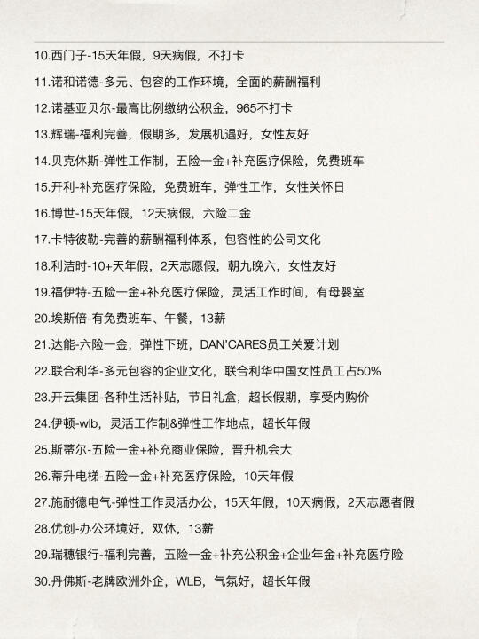 ✔️年假也是10天起步,随工作年限增加,高的能有20-30天