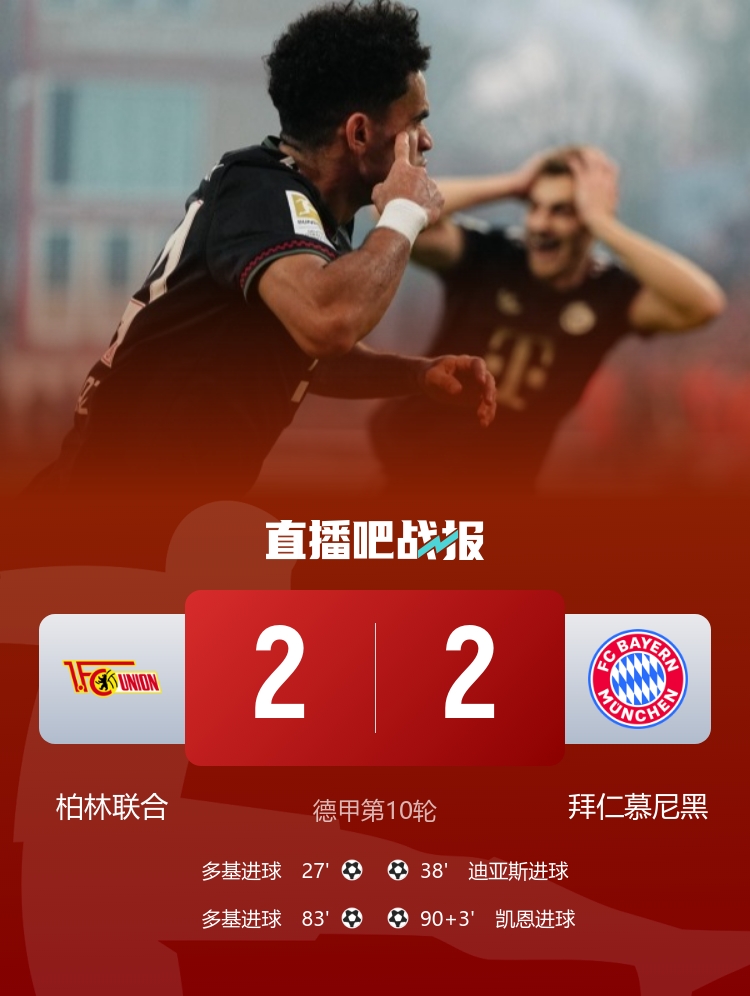 16连胜纪录遭终结!拜仁2-2柏林联合迪亚斯神仙球凯恩绝平