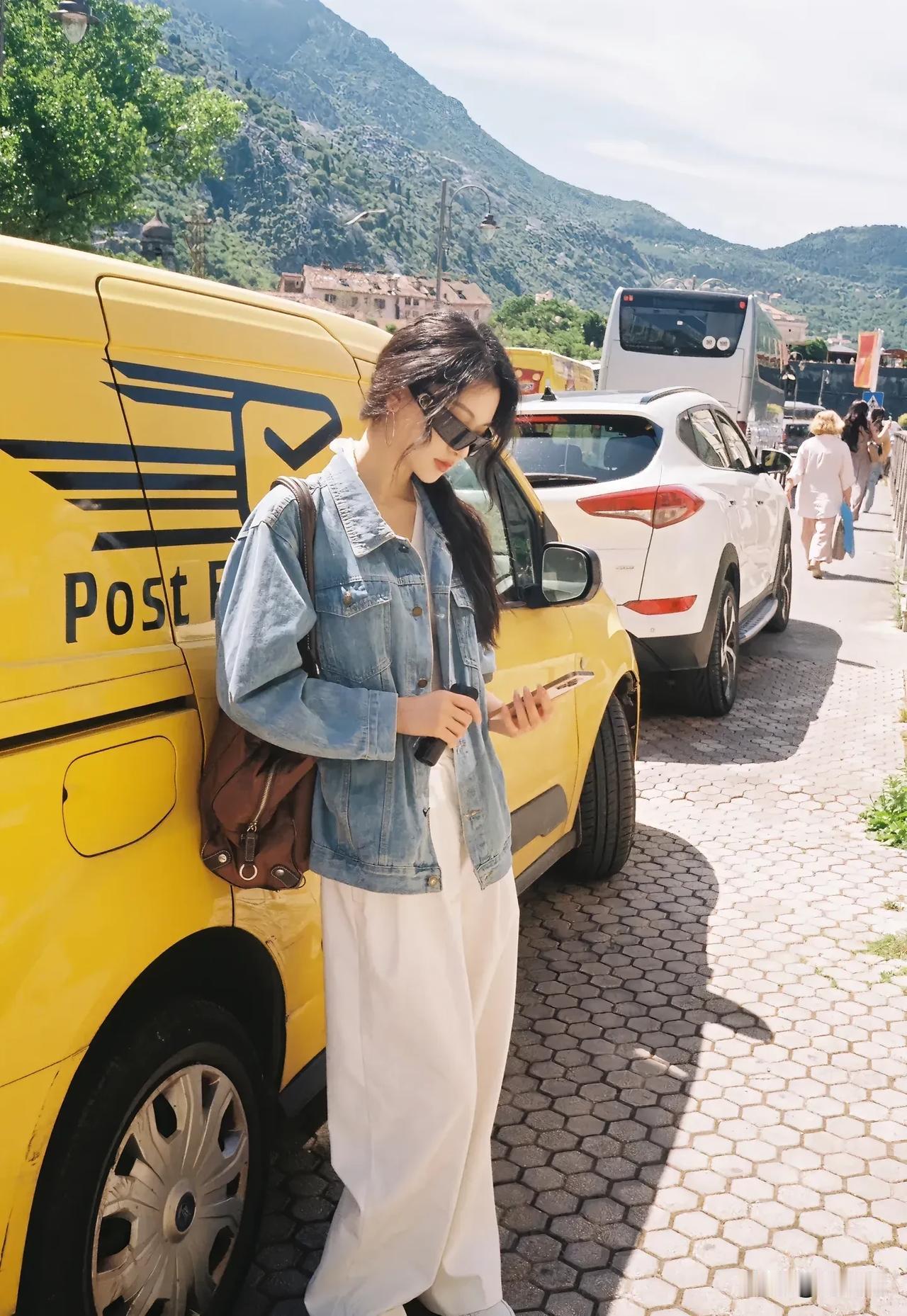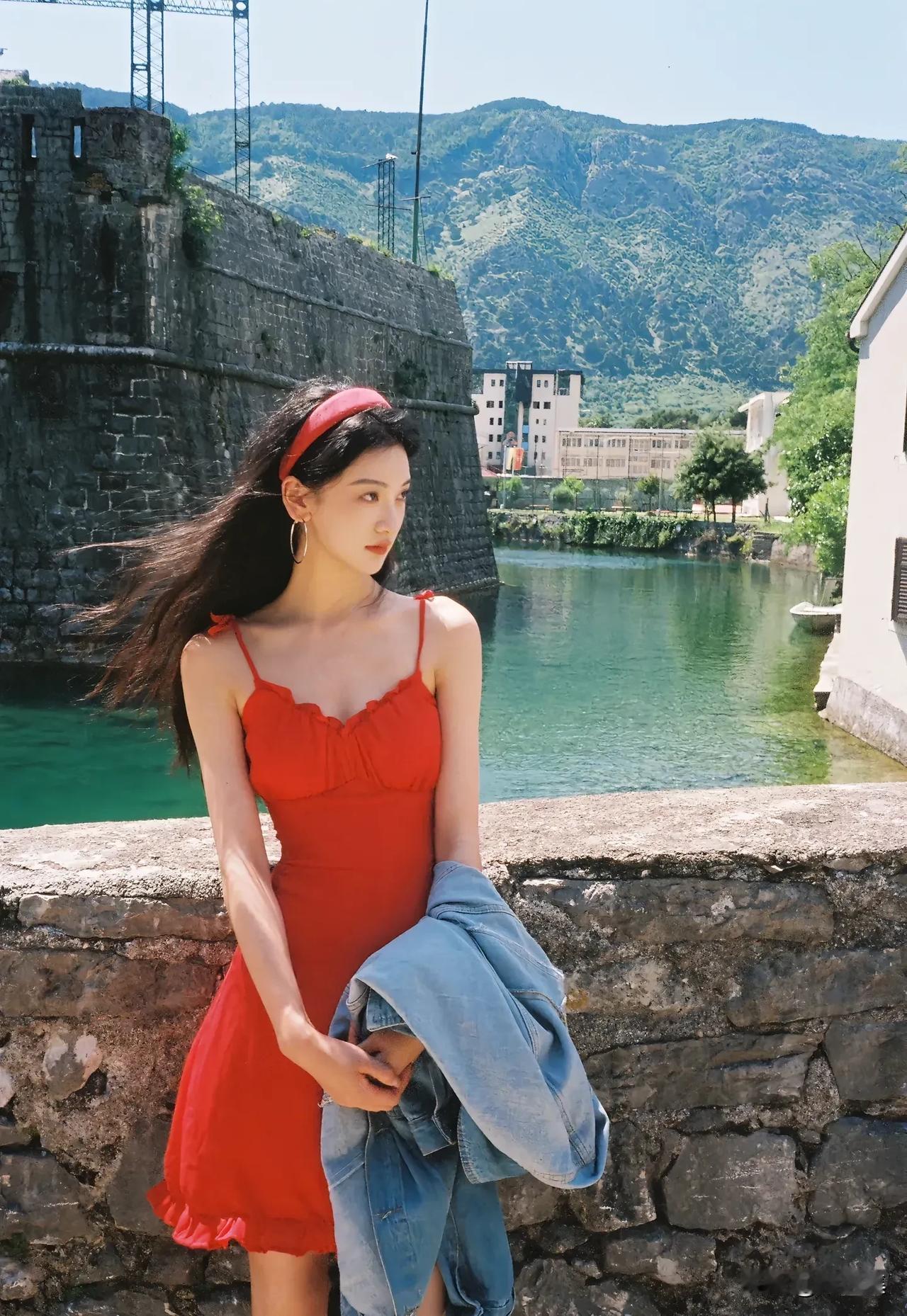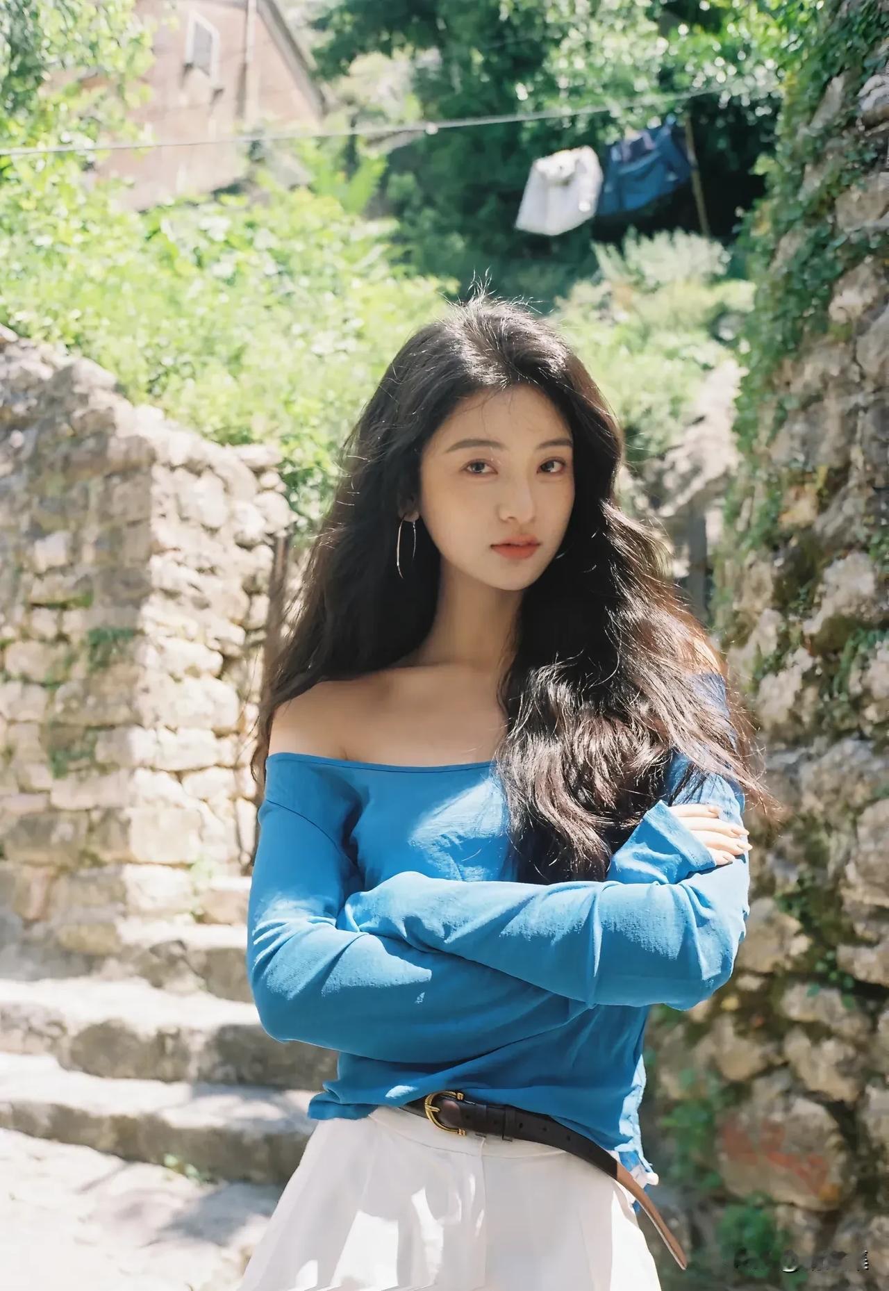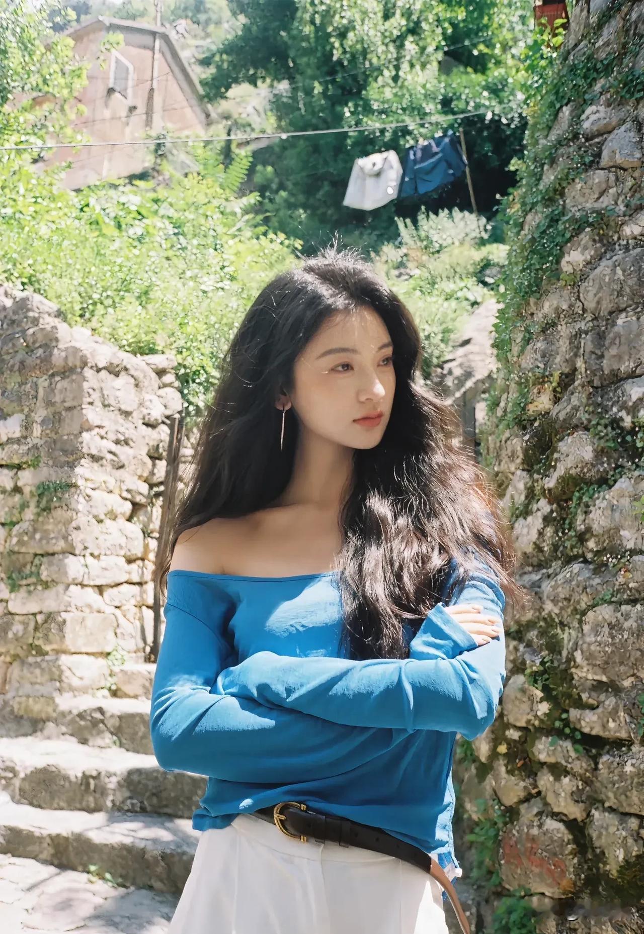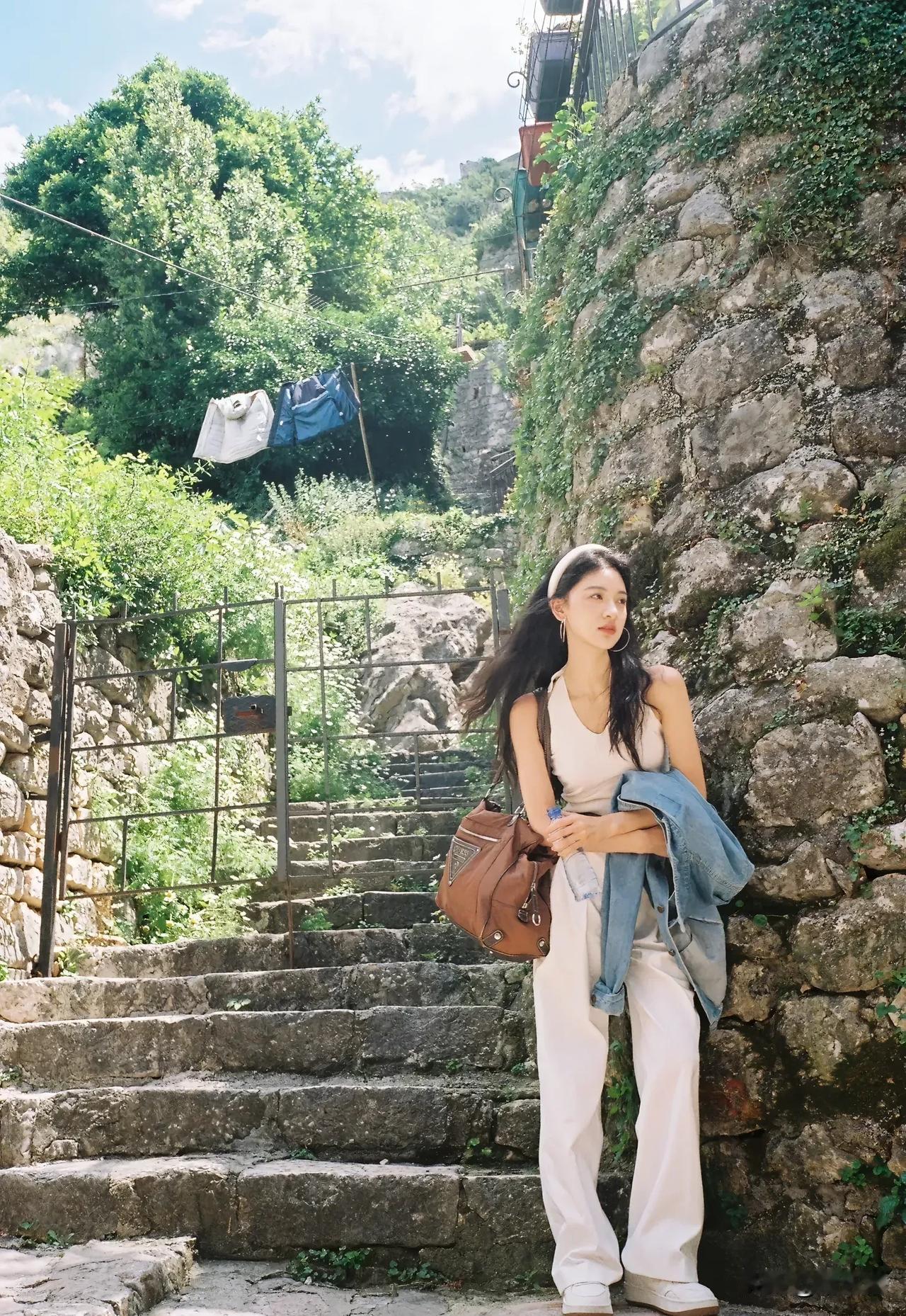 阳光下的花与少女,自然与美好的瞬间。