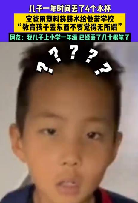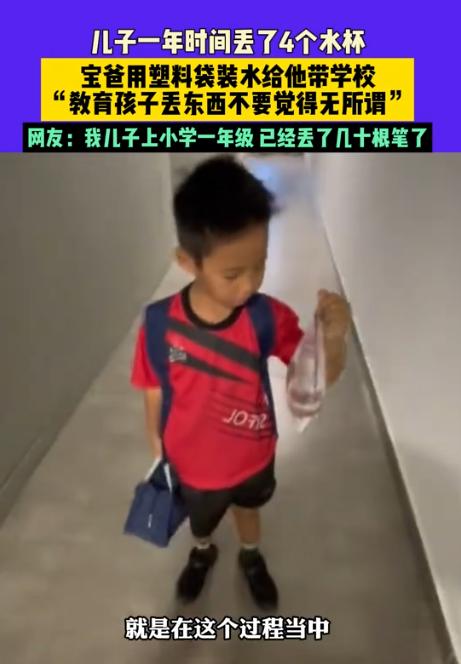 “笑不活了!”近日,一小男孩上学频繁丢水杯,弄丢4个水杯后小男孩的爸爸终于忍不了了,最终爸爸做了一个决定,不给儿子买水杯了,直接拿一个袋子装好水给他带去学校。 小轩(化名)上二年级,刚开学那会儿,爸爸陈先生(化名)和老婆特意带他去商场挑水杯。 孩子一眼就看中了一个红蓝配色、印着奥特曼的保温杯,拿在手里爱不释手。 虽然价格不便宜,但看着儿子眼里的那份喜欢,夫妻俩还是爽快地付了钱。 头几天,小轩简直把那水杯当宝贝。上学路上手里拎着,连睡觉都要放在枕头边。 可这股热劲没过一周,就传来了坏消息,那天傍晚,小轩垂头丧气地回家,小声说:“爸爸,我的水杯不见了……我找遍了教室和操场都没找到。” 陈爸爸当时没责怪孩子,只是叹了口气,想着刚开学,孩子还没完全适应,粗心点也正常。 他摸了摸儿子的头,说:“没事,丢了就丢了,下次记得放书包里,爸爸再给你买一个。” 第二次买的时候,陈爸爸特意挑了个结实耐摔的不锈钢款,外观朴素,还在底部刻上了“小轩 二年级三班”的字样,想着就算再丢,也方便别人捡到归还。 结果,这第二个水杯用了不到半个月,又没了。 小轩说那天上体育课,跑完步渴了,就把水杯放在操场边的水泥凳上,结果下课回来找,早就不见了。 两次丢水杯,陈爸爸心里开始冒火,但看着孩子满脸委屈的样子,最终还是没忍心骂,又给买了第三个。 这回他格外叮嘱:“喝完水就放书包侧兜,放学前一定要检查有没有带上。” 小轩满口答应,可好景不长,三周后又空着手回来了。 这次的理由是:“中午在食堂吃饭,忘在桌上了。” 等第四个水杯丢的时候,陈爸爸彻底忍不了。 那是亲戚送的品牌保温杯,价格上了百元,小轩才用了5天。 问他丢哪儿了,孩子一脸茫然:“我也不记得了。”陈爸爸心想,孩子知道自己丢东西也没后果,反正爸妈都会买新的,自然不会上心。 于是和老婆商量好,这次得让孩子真切体会“马虎”的代价。 第二天早上,陈爸爸没再拿出新水杯,而是找了个干净的保鲜袋,装了半袋温水,封上了口,递给儿子:“今天就用这个带水上学。等你能做到不丢东西了,再去挑新水杯。” 那天放学,小轩小心翼翼地把空塑料袋带了回来,袋子没破,手还被勒出一道印。 接下来几天,小轩每天都小心地拎着塑料袋去学校。 同学好奇地问:“你咋不用水杯了?”他只好尴尬地笑笑,说:“弄丢了。” 几次下来,他自己都觉得丢脸。 陈爸爸看在眼里,心里其实挺心疼,但他更想让儿子明白:丢东西不是爸妈替你收拾残局,而是你要自己承担后果。 过去每次丢了水杯,他都立刻买新的,孩子没体会过麻烦,自然也不会上心。 这种“自然后果教育”比说教有效多了。 这件事后来传到家长群,大家都议论纷纷。 一个妈妈说,她儿子丢过三次文具盒、两把伞,说再多都没用。 还有个爸爸说,他家孩子以前丢过贵的杯子,后来用个旧的反而特别珍惜。 其实家长们都明白,问题不在钱,而是怕孩子养成“丢了就买新的”的习惯。 陈爸爸那句“笑总比一直丢东西强”,说得很实在,让孩子自己体会麻烦,才能真正长记性。 对此你怎么看? 信源:新界视频