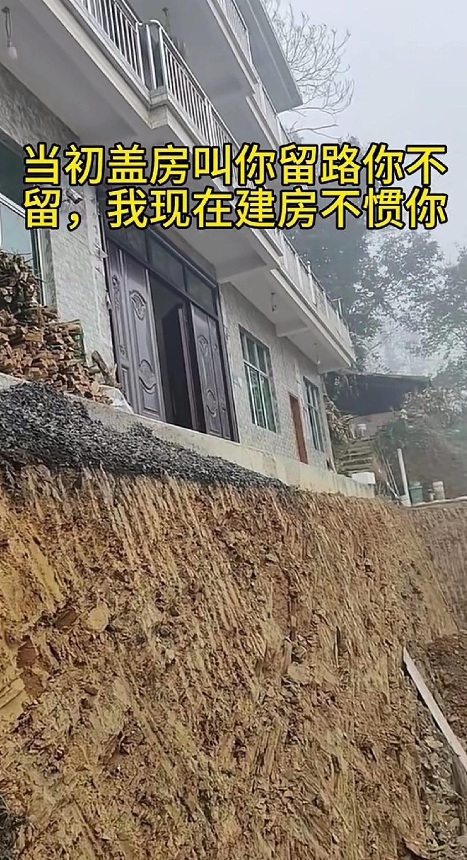 网友: 当初建房让你留后路你不不留,现在我建房不惯着你。