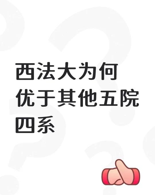 西法大为何优于其他五院四系 晚上睡不着,便想搞抽象,希望不会引起不必要的争吵。 如题,原因如下: 第一,五院中,唯有西法大和法大的简称有法字。 第二