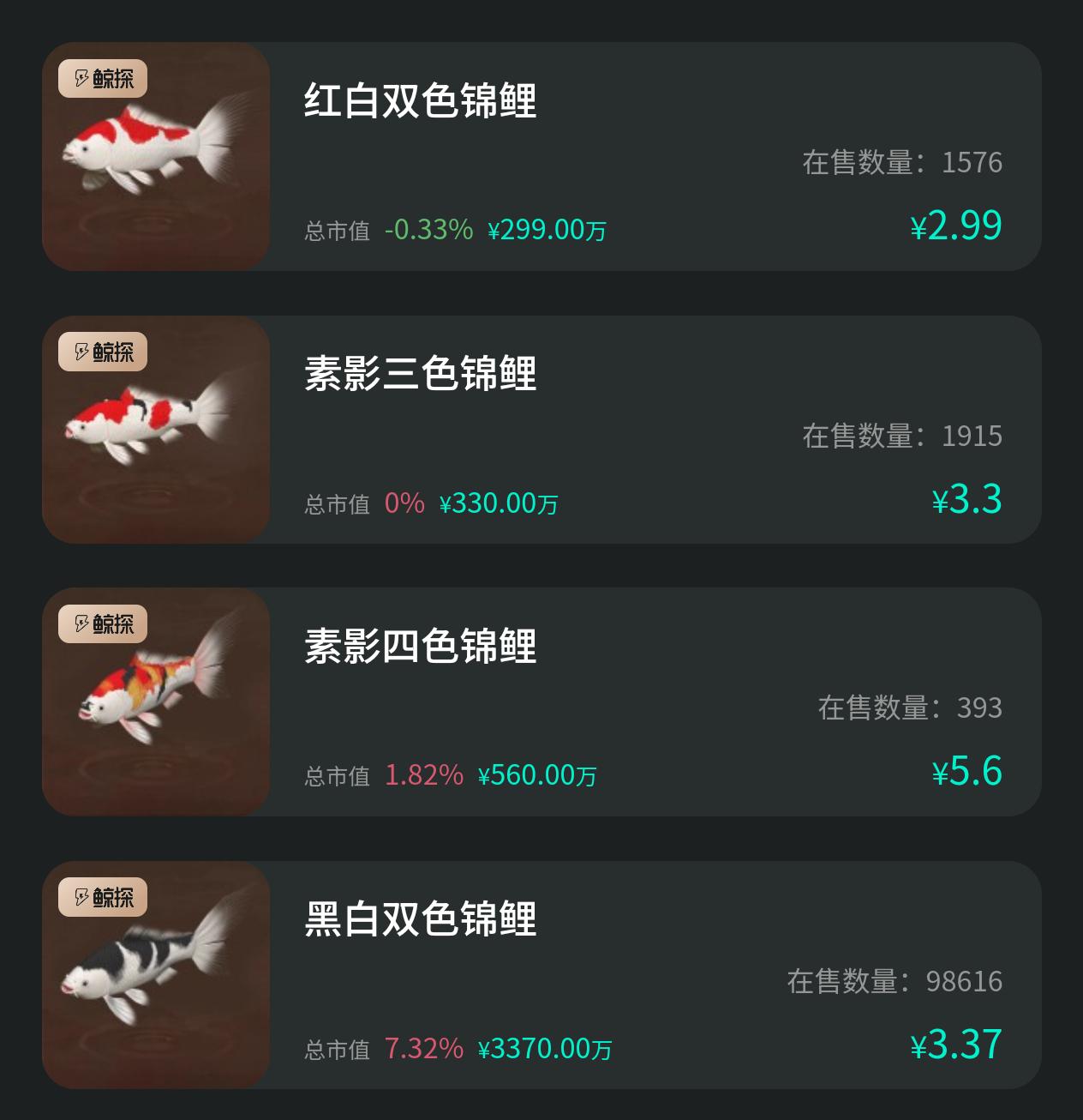 又换了一条黑白双色锦鲤 最近这两天价格不咋地呀买数字藏品的都是些什么人? 什么样的数字藏品适合收藏? 鲸探藏品有升值空间么 为什么现在数字藏品越来越流行?