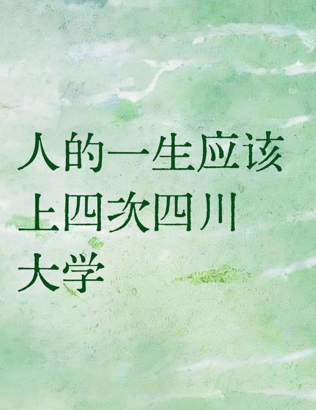 人的一生应该上四次四川大学 第一次是在志愿填报的时候。看着厚厚的招生计划,你们看见了“四川大学”几个字,就注定了那纠缠着解不开的的命运五湖四海,天南海北,一起来到了这个去哪都只要两个小时的城市,正是校训“海纳百川,有容乃大”的写照。 第二次是军训的暑期前后。冷暖锋面交汇于天府之国,黑云上蔽,在昼犹昏,全校成为了那个数学题里一遍放水一边漏水的水池。雨水从沟沟壑壑汇聚如百川入海般汇入宿舍楼外的天然水池。你已深入这海纳百川之地。 第三次是在下课后的长桥。你感受着饭点的饥饿,快步走过已经显示FL的电梯,挤着他人从楼梯走下。此时的长桥早已水泄不通。若你不幸骑车便能体验到川大人特有的松弛感——从没有人把自行车骑的这般优雅从容,以至于脚踏实地。江安河水并不急着流淌。 第四次是在宿舍的浴室。永远平稳而温暖的水流为你冲去一天的污浊与疲乏。你的汗水飞溅到挡板上,飞溅到隔壁上厕所的人的脚边,最后一起轮回五谷。 四川大学无时无刻不在贯彻祂的校训,教会你包容,教会你平静,像是加速社会里的潺潺泉水,让你海纳百川,让你有容乃大。 四川大学 上大学带来的改变 梦想的大学 我的高质量大学 我的目标大学