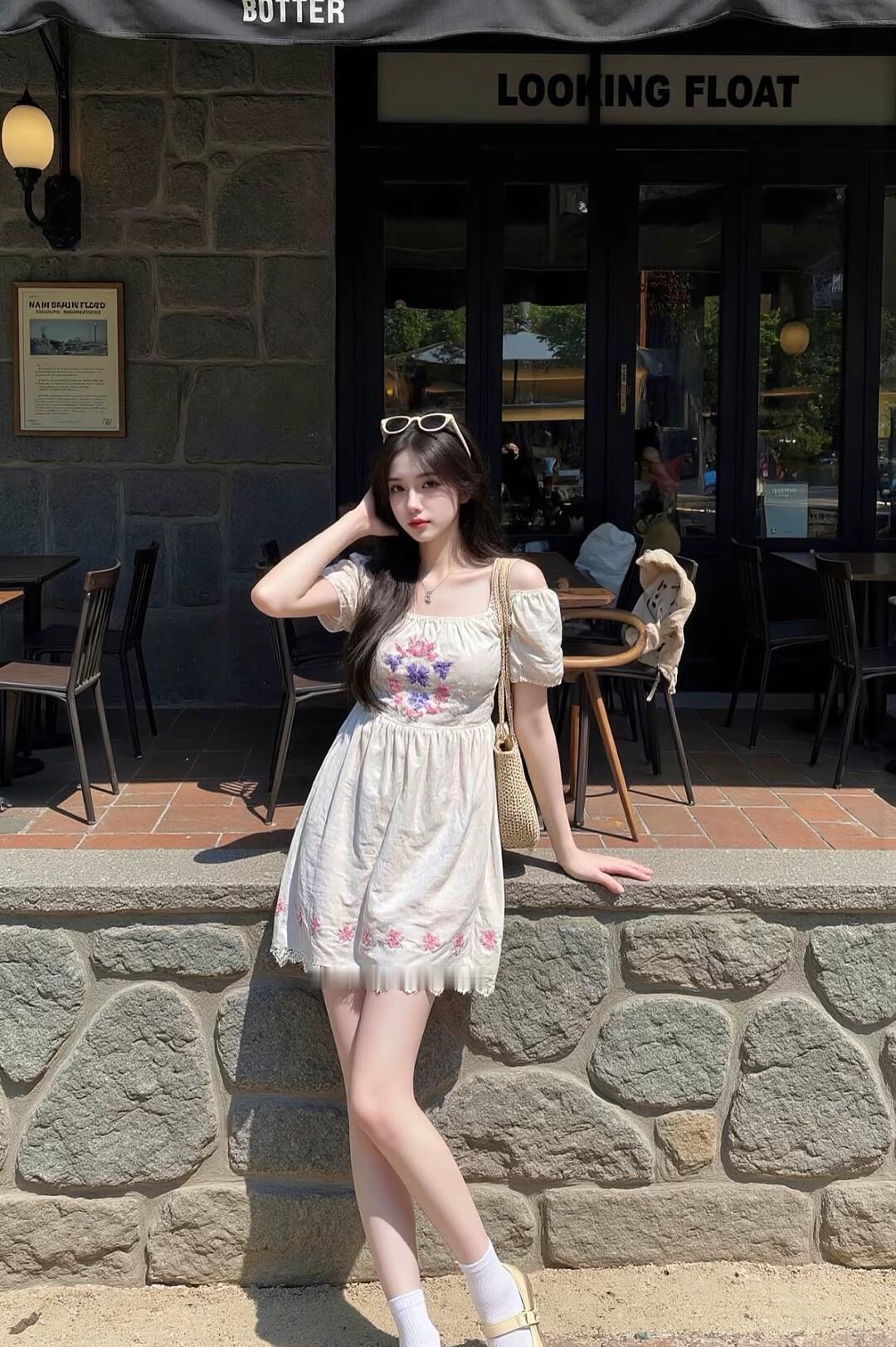 夏日甜美穿搭,浅黄色碎花连衣裙,搭配白色高跟鞋,轻松优雅,尽显夏日风情。