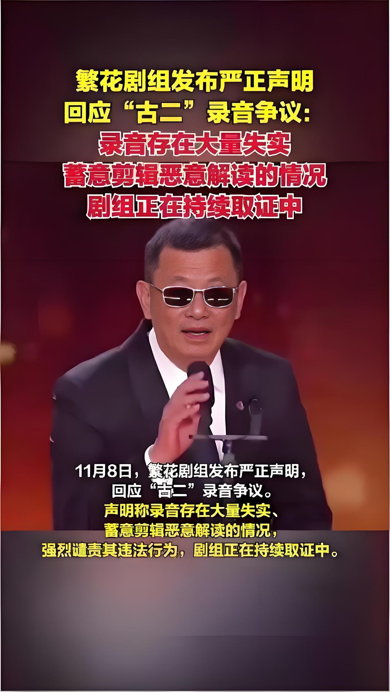 2025年11月8日,《繁花》剧组针对前工作人员程骏年(网名“古二”)曝光的王家卫录音发布严正声明,称录音未经当事人同意,存在大量失实、蓄意剪辑及恶意解读,已造成恶劣影响。剧组正持续取证并提交相关部门,坚决维护主创权益。王家卫 王家卫导演电影 繁花编剧风波 王家卫语录