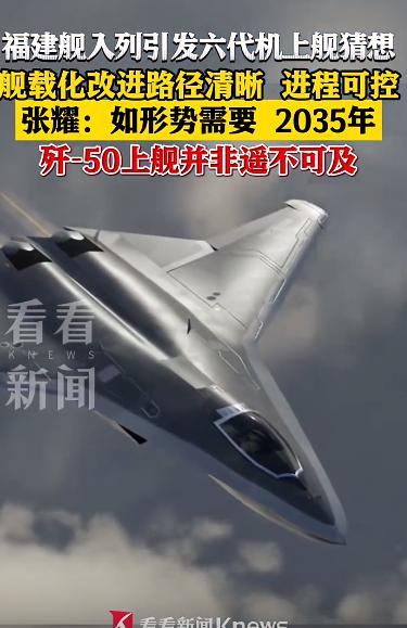 网友都是不知足的,福建舰刚入列,就在猜想,六代机啥时候上舰。有专家说了,如果有需要,2035年歼-50上舰并非遥不可及。他给出了10年的时间,我是赞同的。实际上,他的预估还是比较保守的,或许会提前上舰的。当然,那个时候,我们的核动力估计也造好了。总之,大家一定要相信我们的能力和技术。很多你认为不可能的,并非都是遥不可及的!