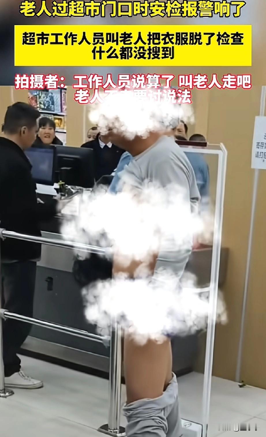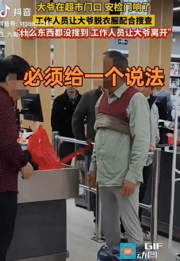 太过分了!安徽,一老人在过超市时安检报警响了,超市工作人员让老人脱光衣服后,却什