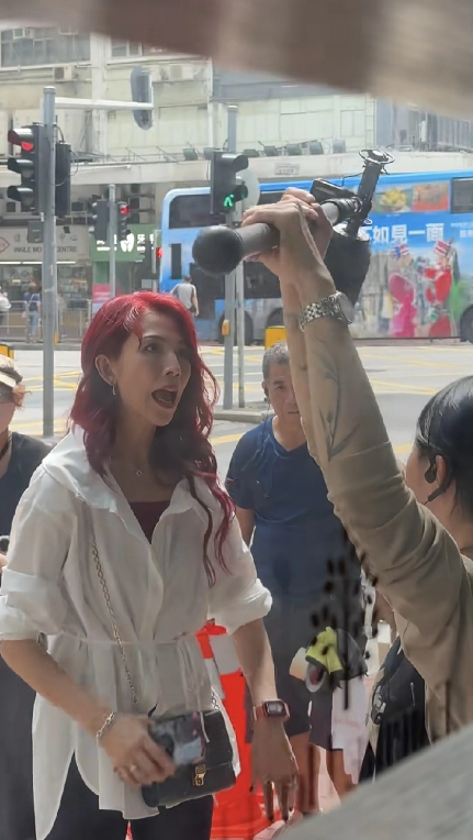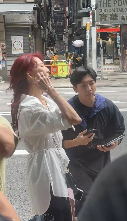 香港街头偶遇蔡少芬拍戏,本人太瘦了人也不年轻。 今年52岁的蔡少芬染着一头红色长发,身材高挑但身上没有什么肉,手上都是青筋暴起,目测体重90多斤。她身穿白色衬衫认真拍夺女的感情戏。说实话,蔡少芬演技是挺好的,不知是审美问题还是导演要求染成红色头发,看上去老气横秋的,并不适合她,你们觉得呢?