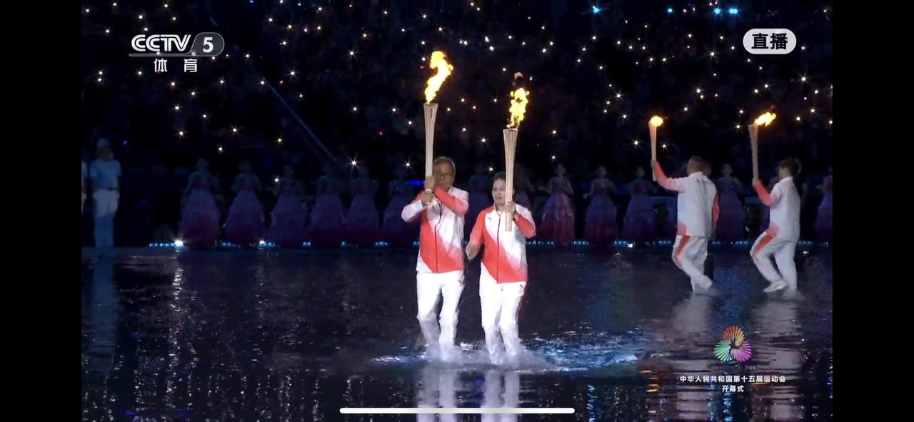 十五运盛大开幕式场面美轮美奂,多姿多彩,特别是火炬点燃仪式就像放电影大片一样非常壮美。但是就不明白一点,火炬手为什么非要在水里跑,毕竟脚底下有水,水是有阻力的,火炬手要举着火炬跑,眼睛看向前方,不能注意脚底下,真怕他们一不小心再加上心里激动摔倒了,那就麻烦了。特别是第一棒马林和陈若琳跑的距离有点远,感觉他们有点吃力。 虽然他们曾经都是运动员出身,但毕竟是黑天,又在万众瞩目下,心里肯定会激动的,好在一切都完美进行了,总感觉还是在干燥的地面奔跑好一点,毕竟是安全第一。 不得不说刘德华太稳了,不管是形体动作还是演唱的声音都很稳重很得体,毕竟大场面见得多了,一首中国人让整个演出达到高潮! 开幕式的演出展现很多岭南风采,粤语粤韵,南派功夫,舞狮,英歌舞,岭南音乐等等,把粤港澳的古老和现代都在极短的时间内呈现出来,可以说一个运动会是对一个省份两个特区综合实力的展示,不光是在开幕式中呈现,接下来还要给全国运动员提供尽情展示的平台,给全国观众提供良好的观赛体验,这才是硬实力的展现,希望十五运圆满成功!