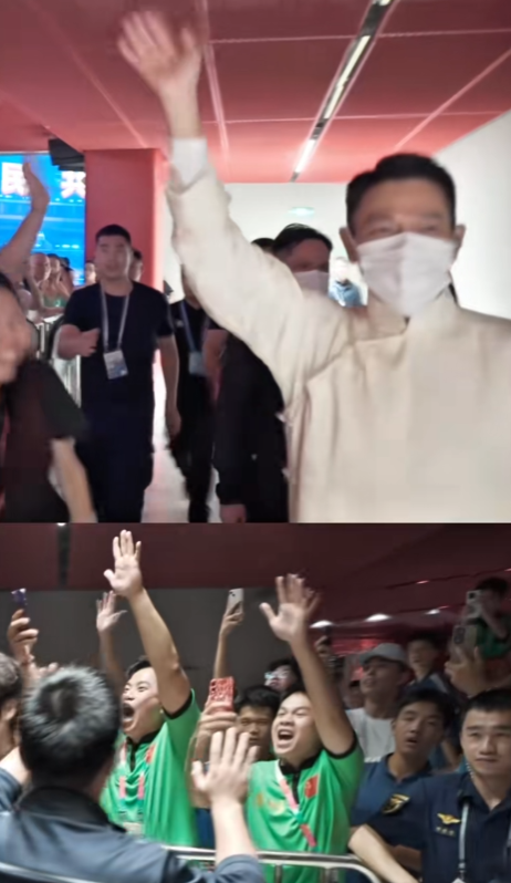 登场走上舞台时,两边的观众冲他热情欢呼、用力挥手。