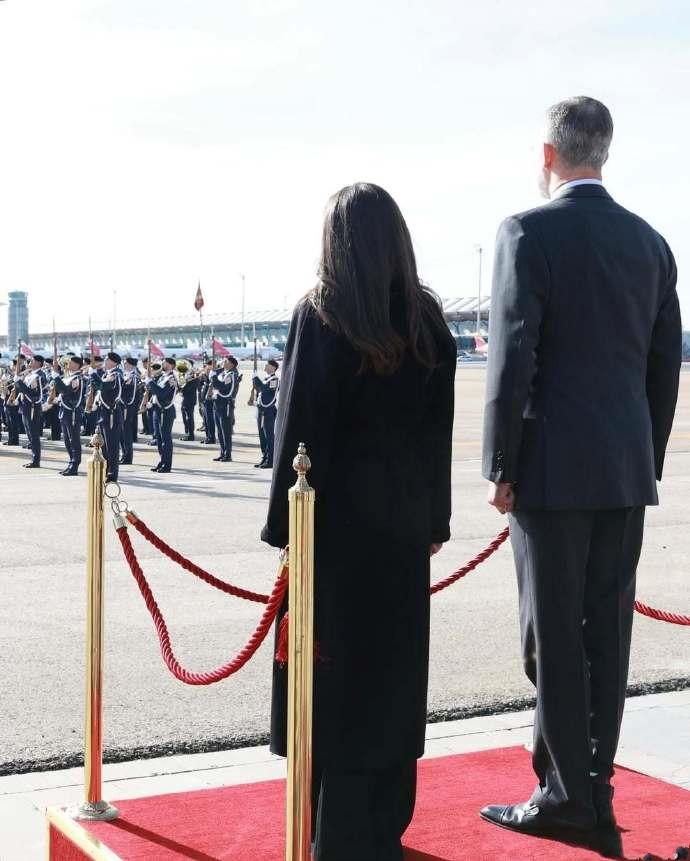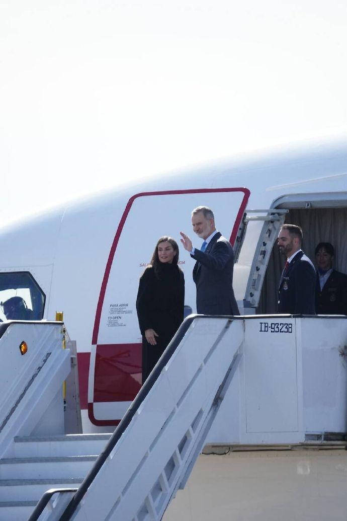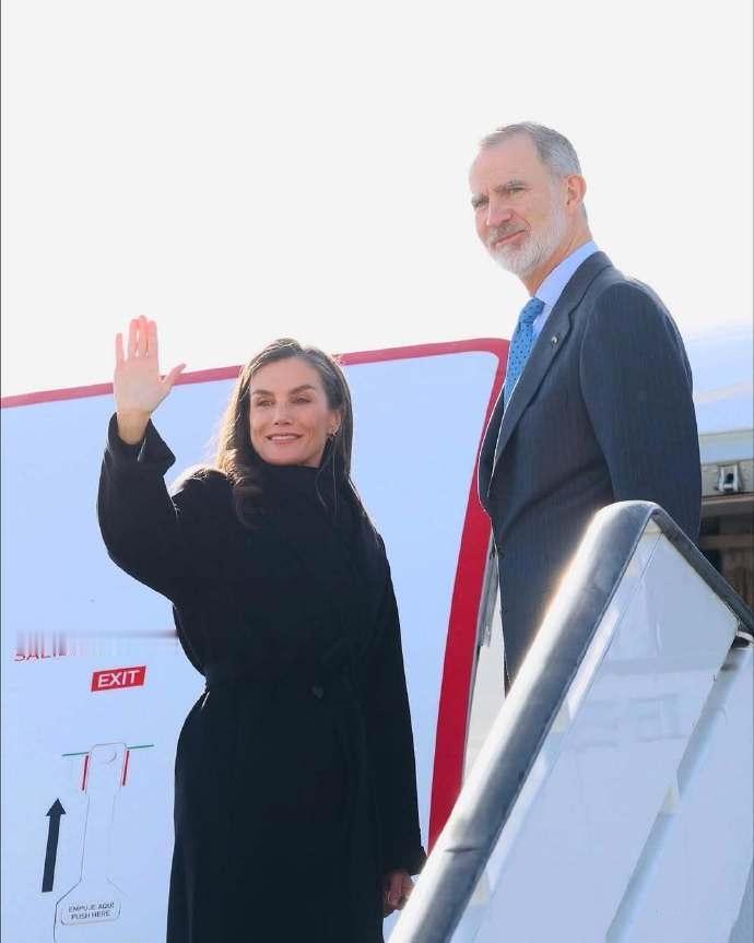 11月9日挽上18点50分,西班牙国王和莱蒂齐亚王后已经登机来华访问了! 从曝光的画面我们可以看出,当天西班牙国王费利佩穿的非常正式,西装还是黑色条纹款式,并搭配蓝色领带,造型非常帅气,心细的人一看这套西装应该是新的,给人很有质感的画面,除此之外莱蒂齐亚王后穿一件黑色长款风衣,搭配黑色裤子和黑色皮鞋超优雅,值得一提的是,莱蒂齐亚王后和老公的皮鞋都程亮程亮的。 另外莱蒂齐亚王后还拎着一个精致的黑色包包,可以说这次莱蒂齐亚王后整体打扮就是黑色造型,估计她就是到达成都后也应该是这身衣服了。 据悉西班牙国王和莱蒂齐亚王后是在马德里巴拉哈斯机场起飞前往中国成都市,估计明天,也就是11月10日的时候大家就能看到他们了,根据媒体报道西班牙国王和王后将在11月10日到13日这三天内对我们访问。