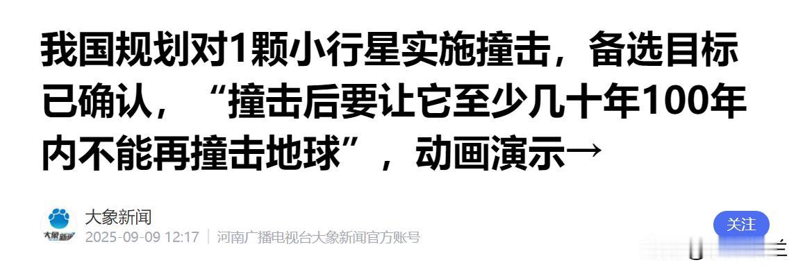 如果真的成功,中国航天将会超越所有神话!最新消息显示,中国将执行一项前所未有的深空任务——在离地球一千万公里的地方,用一次精准到发丝的撞击,把一颗直径约五十米的小行星轨道推偏三厘米。 中国早就开始规划小行星防御的事了,从2022年建“中国复眼”雷达,到2023年把防御小行星列为航天八大行动,一步步攒足了底气。 现在定下来要在2027年前后干件大事:在离地球一千万公里的地方,选一颗直径五十米的小行星来次“精准撞击”,目标是把它的轨道推偏三厘米。 别小看这组数字,一千万公里是26倍地月距离,五十米的小行星在这个距离上比足球还难瞄准,三厘米的偏移量更是比发丝还精细,这操作说是“宇宙级穿针引线”都算谦虚。 而咱们能这么有底气说要做这件事,全靠前期铺的技术摊子,2022年建成的“中国复眼”一期已经能拍月球三维雷达图,2025年二期完工后,25部30米孔径雷达组成的阵列能把千万公里外几十米大小的小行星看个通透,连它的成分、自转速度都能摸清。 这还不够,上海天文台的旋转漂移扫描CCD技术早就解决了快速移动小行星的观测难题,赤经和赤纬方向的观测误差能压到0.24"和0.32",相当于在万米外看清硬币上的花纹,一“看”一“测”双保险,才敢说能锁定目标。 更关键的是“撞得准”的硬实力,这次任务玩的是“伴飞+撞击+伴飞”的套路,先派观测器抵近摸清楚小行星的“脾气”,再让撞击器精准发力,最后还要回头检查效果,整套流程跟外科手术似的精准。 这背后靠的是VLBI虚拟超级望远镜的加持,长白山、日喀则这些新观测站连起来,能给探测器画出亿万公里外的精确航线,中国航天科技集团的模拟数据更实在,导航系统已经能把撞击偏差控制在2厘米以内,比任务要求的精度还高一截。 而且,对比国际同行更能看出分量,NASA2022年的DART任务虽然成功撞偏小行星,但偏移量是数十米级别的“粗放操作”,而中国直接挑战厘米级精度,技术难度呈指数级上升,国际小行星防御工作组主席都直言,要是中国能成,人类深空防御能力直接上一个大台阶。 要知道,这颗小行星只是备选名单里的一员,我国早就筛选了10颗从24米到89米不等的目标,显然是对技术心里有底。 别觉得三厘米不起眼,这里面藏着“四两拨千斤”的智慧,中科院专家算过,现在偏三厘米,10年后就是1000公里的差距,100年后能彻底规避撞击风险,更妙的是这些技术能直接复用,“中国复眼”未来能观测到1.5亿公里外的天体,VLBI系统能支撑天问二号的5亿公里探测,这次撞击积累的自主导航、深空通信技术,以后清理太空碎片、优化深空航线都用得上。 说到底,这事儿真成了,比神话靠谱多了,神话里补天靠的是神力,现在我们靠25部雷达、四站一体的观测网和毫米级的控制技术;古人怕“天倾西北”,现在我们能提前几十年给潜在威胁“微调轨道”,更难得的是中国没把技术捂在怀里,吴伟仁院士已经向全球发出合作倡议,要建太空安全命运共同体。 这种把神话变成工程图纸的能力,才是中国航天最牛的地方,不是靠吹嘘,而是2022年建雷达,2023年列规划,2025年完善设施,2027年动手实践,每一步都踩得扎实,等真的在千万公里外实现那三厘米的偏移,就不是超越神话了——毕竟神话从来没教过人类,怎么用科学给地球系上安全带,这事儿值得所有人盼着它成。