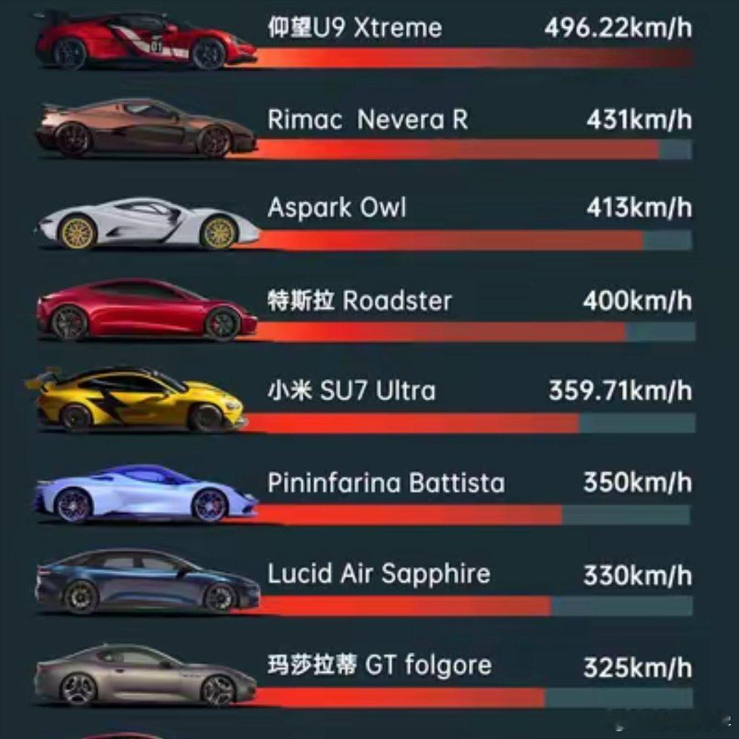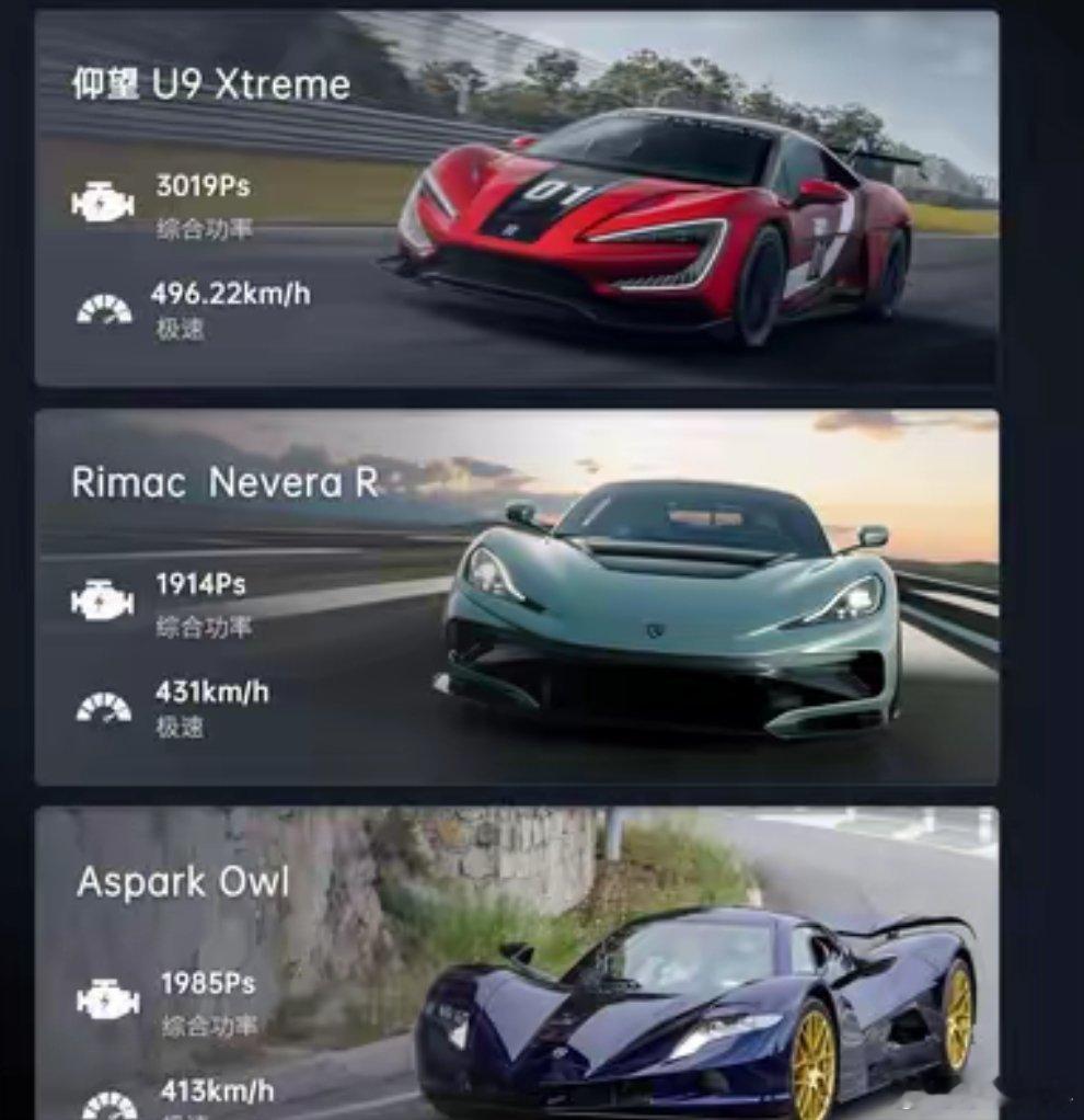 盘点了一下全球汽车极速前9位,首先排名第一496.22km/h的车是咱们国产车,仰望 U9 Xtreme,这实力毋庸置疑了吧?