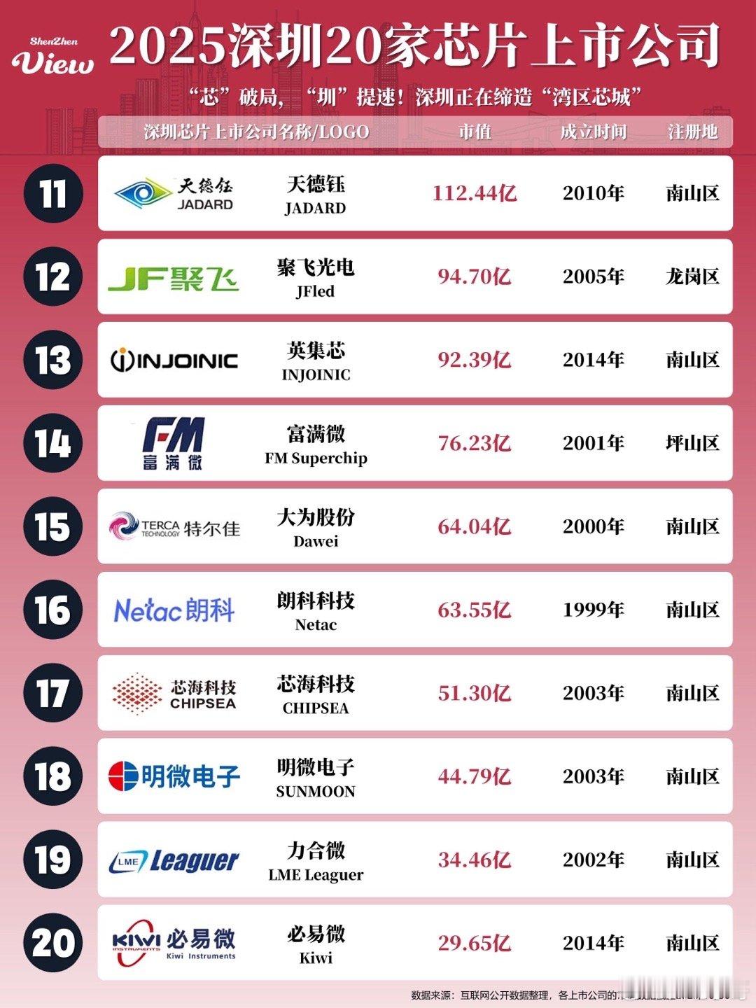 2025深圳20家芯片上市公司!江波龙、佰维存储和德明利位列前三!“芯”破局,“圳”提速,深圳正在缔造“湾区芯城”。特区之特