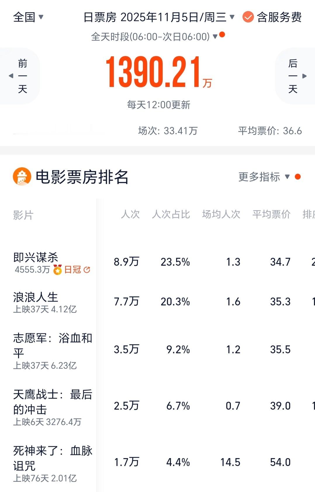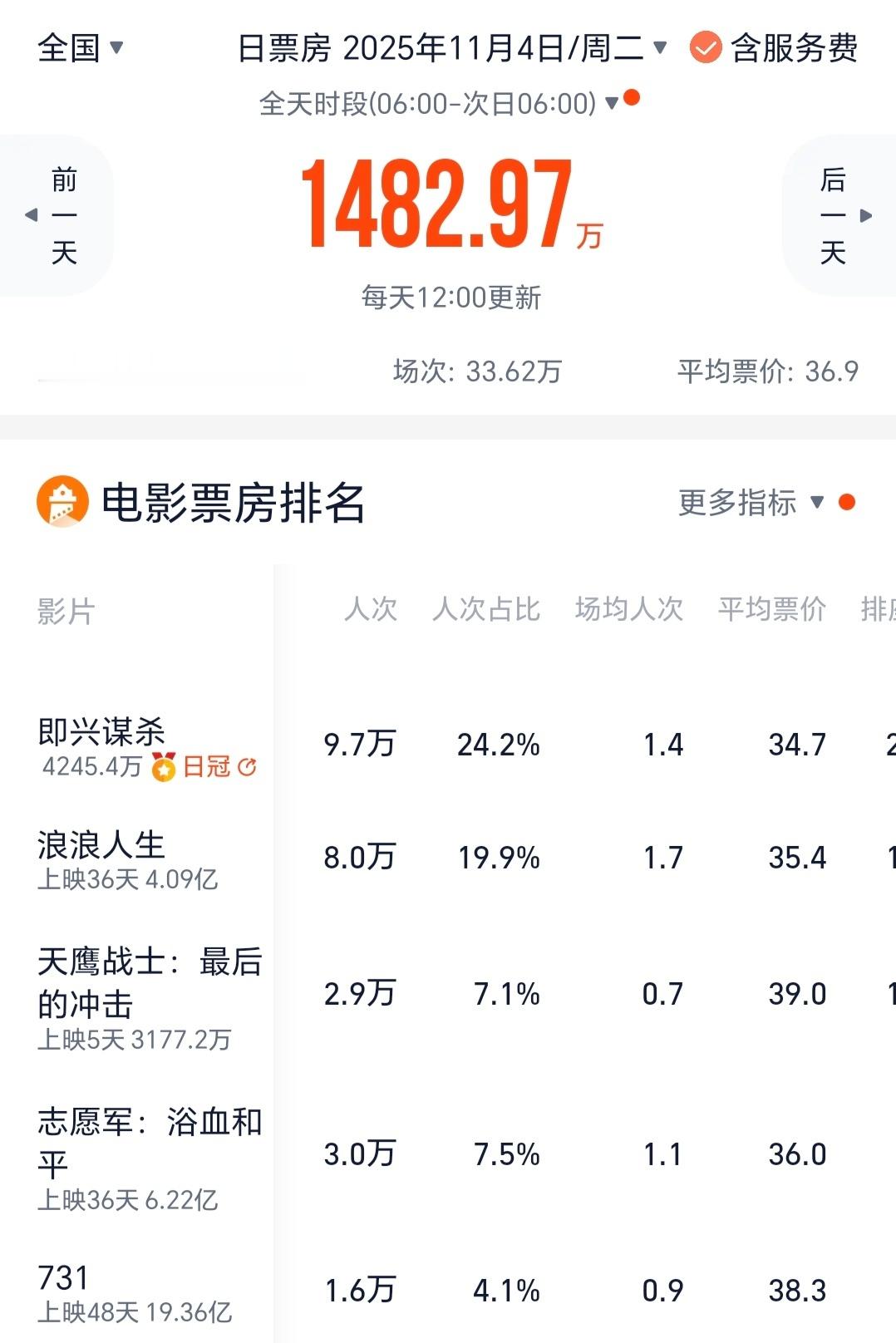 票房惨淡且还在逐日递减…今天该不会1200w出头吧…