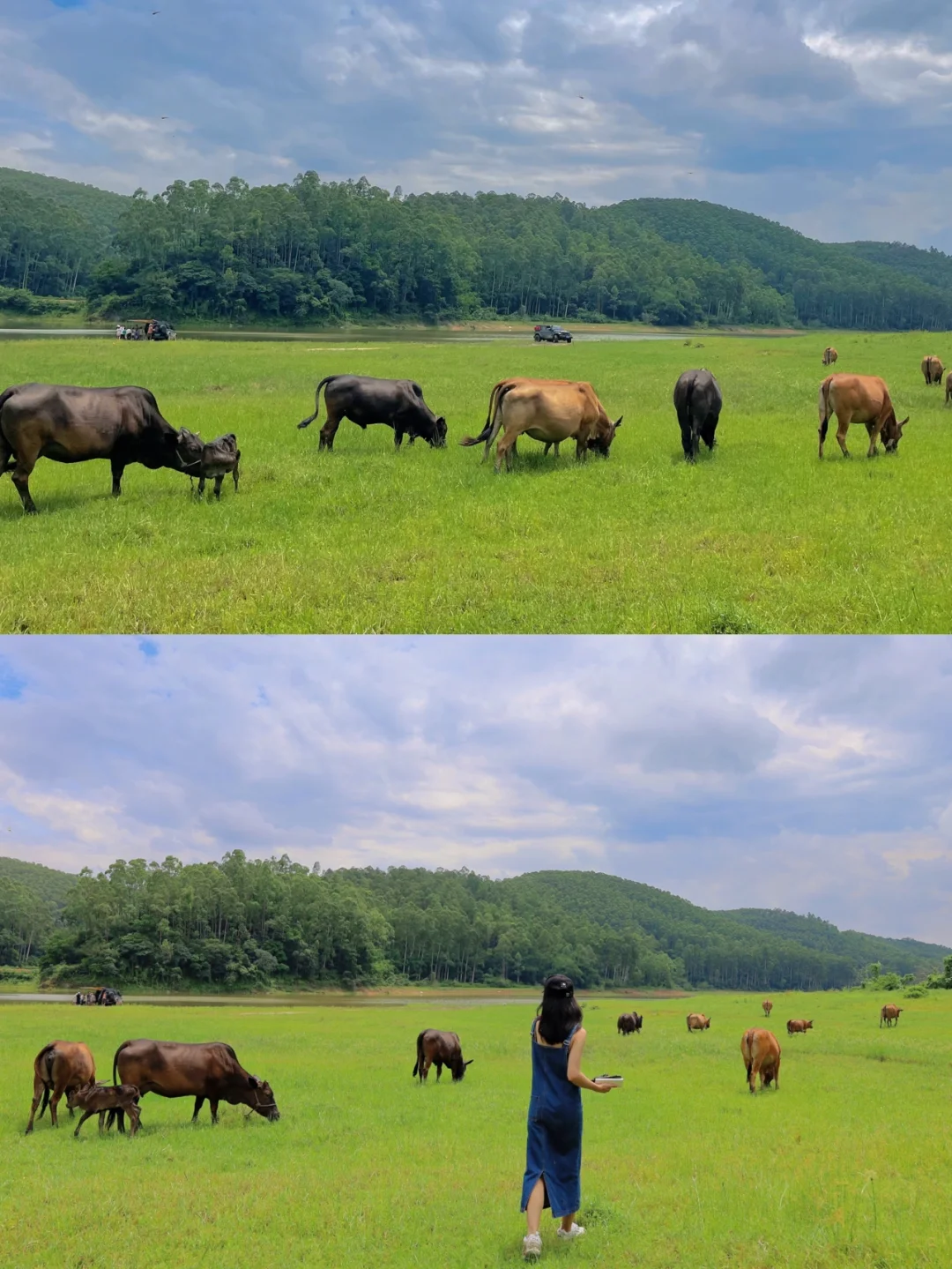 山角水库是真的很好看,背山面水、还有牛牛在吃草,有种回归大自然的感觉,很适合露营⛺️而且来这里的人很少,很适合拍照📷